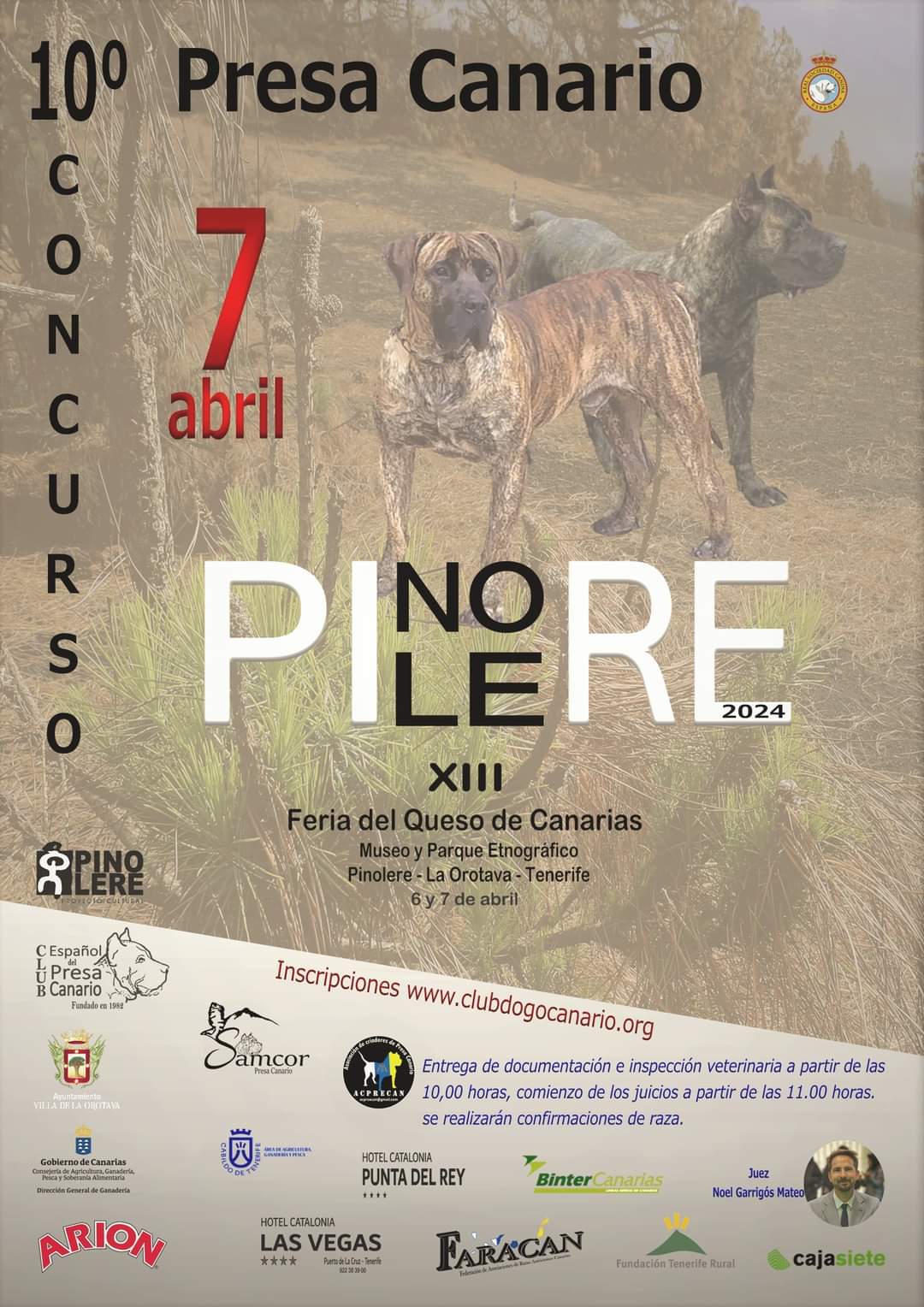 La entrega de documentación e inspección veterinaria a partir de las 10:00, comienzo de los juicios a partir de las 11:00. Se realizarán confirmaciones de raza. Para inscripciones www.clubdogocanario.org