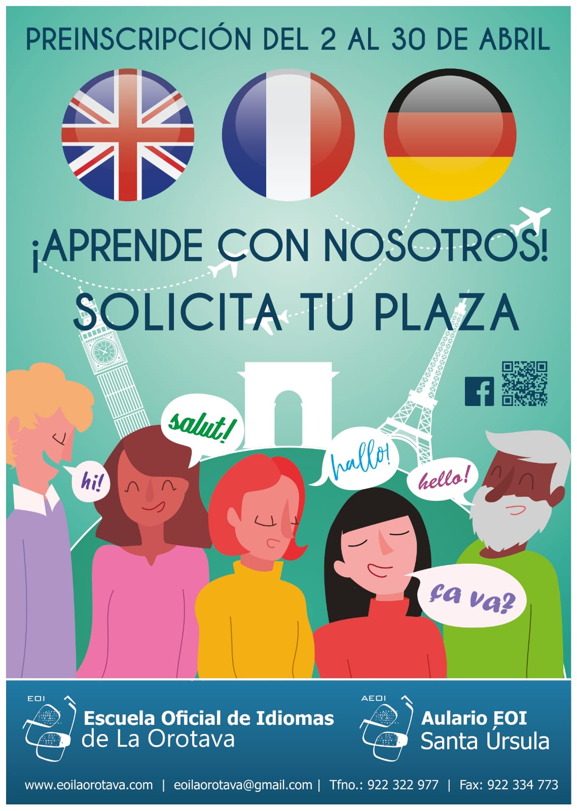 Abierta la PREINSCRIPCION CURSO 2019/2020 EOI LA OROTAVA