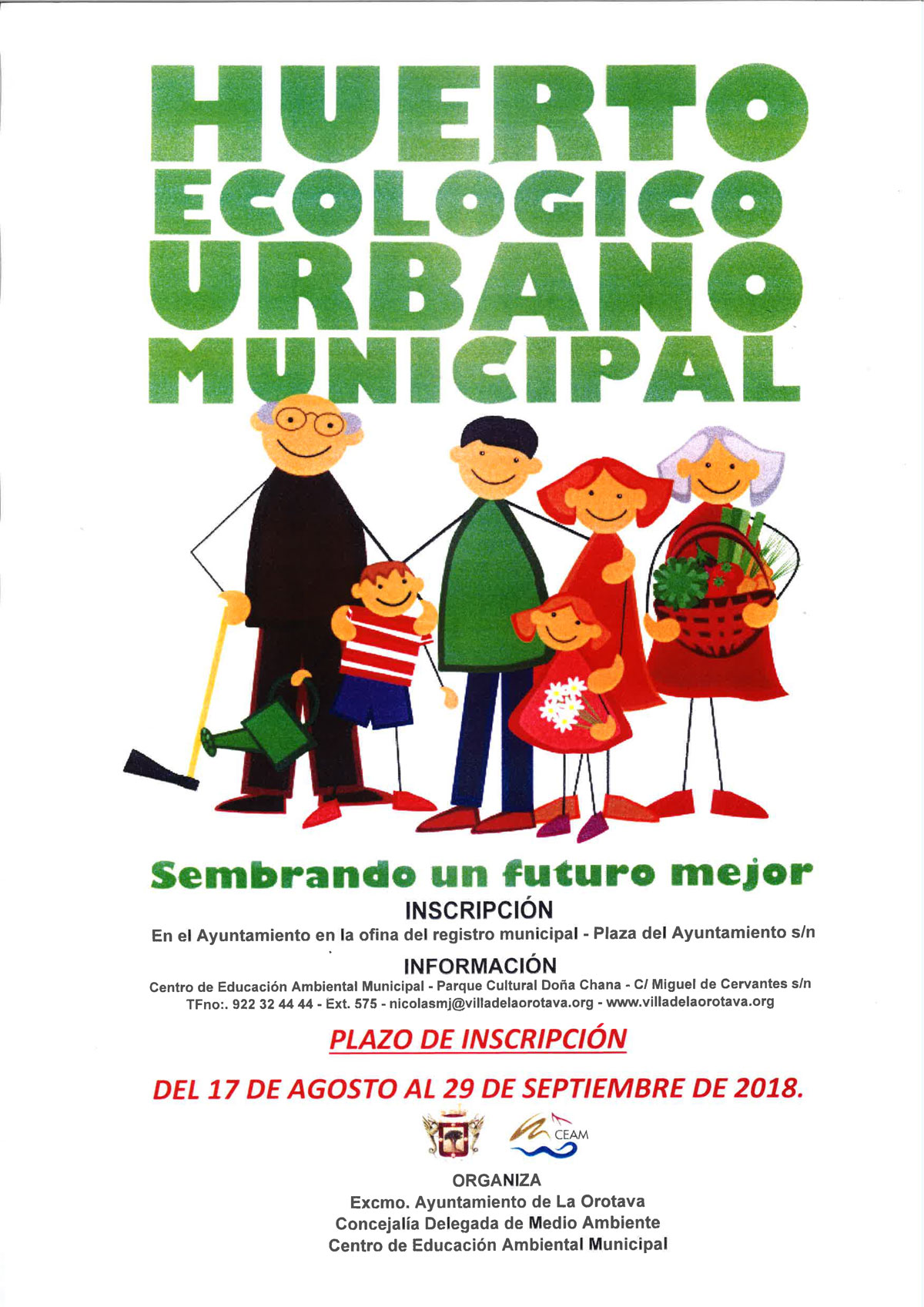 El Ayuntamiento de La Orotava, a través del Centro de Educación Ambiental Municipal, abre de nuevo el plazo para adjudicar los pequeños huertos urbanos y ponerlos a disposición de los vecinos. Así, mediante esta convocatoria pública se procederá a la adjudicación de un total de 58 parcelas de unos 30 metros cuadrados cada una, aproximadamente, que se podrán solicitar hasta el 29 de septiembre. De registrarse más solicitudes que parcelas se procederá a la adjudicación de las mismas mediante sorteo.