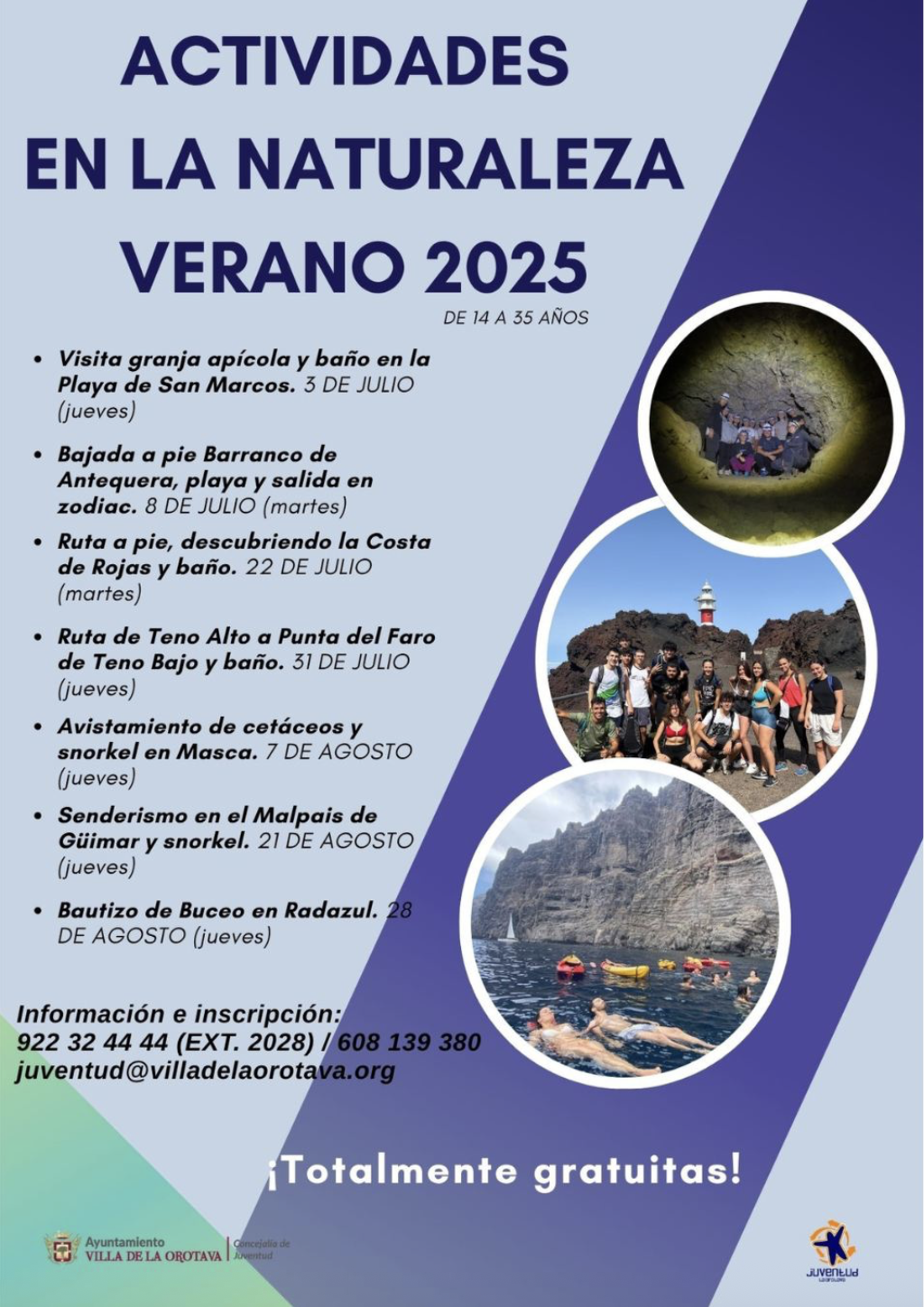 Inscripción e información: • WhatsApp: 608 139 380 • Teléfono: 922 32 44 44 (Ext. 2028) • Correo electrónico: juventud@villadelaorotava.org