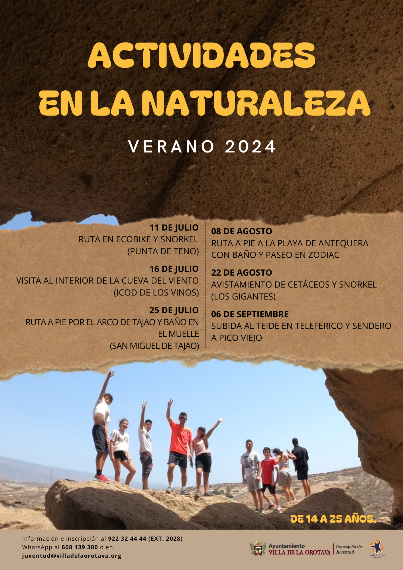 Más información e inscripción en el 922 32 44 44 (EXT. 2028), WhatApp al 608 139 380 o por correo electrónico juventud@villadelaorotava.org