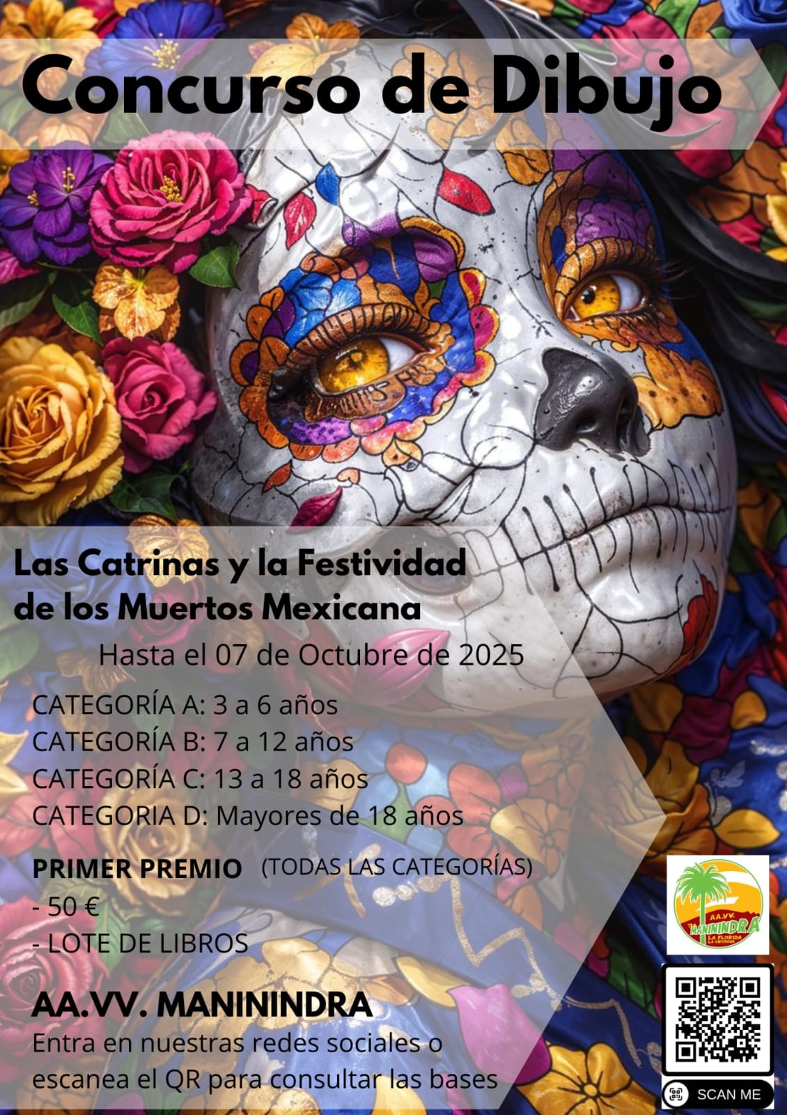 En el marco de la Semana Temática dedicada a las Catrinas, la Asociación de Vecinos Maninindra de La Florida, con la colaboración del Ayuntamiento de La Orotava, organiza el concurso de dibujo “Las Catrinas y la Festividad de los Muertos Mexicana”.
