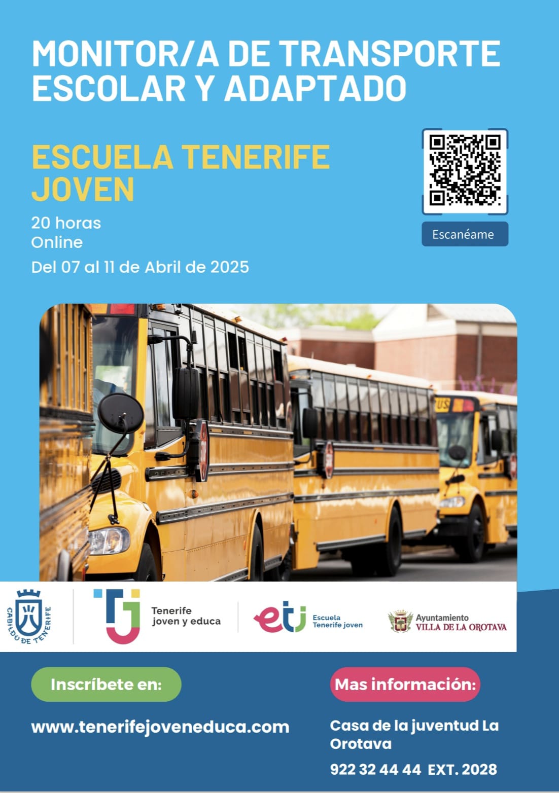 Para más información, acude a la Casa de la Juventud de La Orotava o contacta al 922 32 44 44 (Ext. 2028).