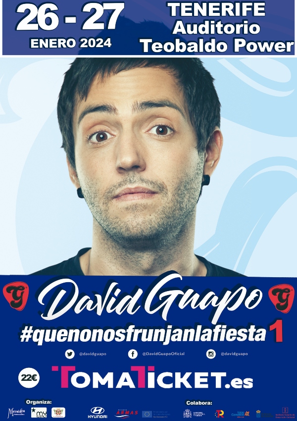 El showman David Guapo visita la Orotava con su espectáculo: #quenonosfrunjanlafiesta1, una revisión de su mítico monólogo. Un espectáculos de: acting, improvisación y música combinados siempre con humor, ironía y desparpajo, que lo hace apto para todos los públicos.