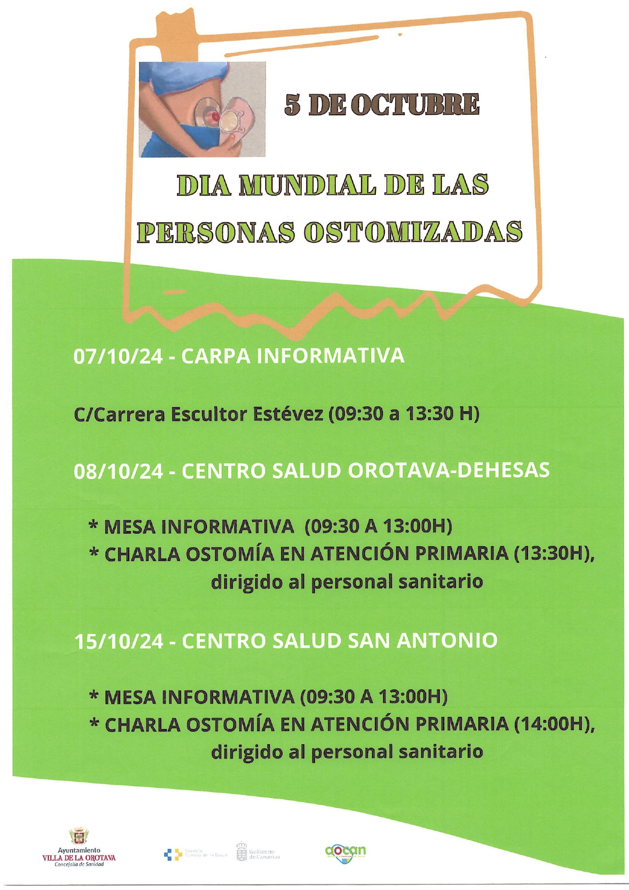 - 7 de octubre, de 9:00 a 13:00 h: Punto informativo en el Puente, con la colaboración de AOCAN (Asociación de Ostomizados de Canarias).