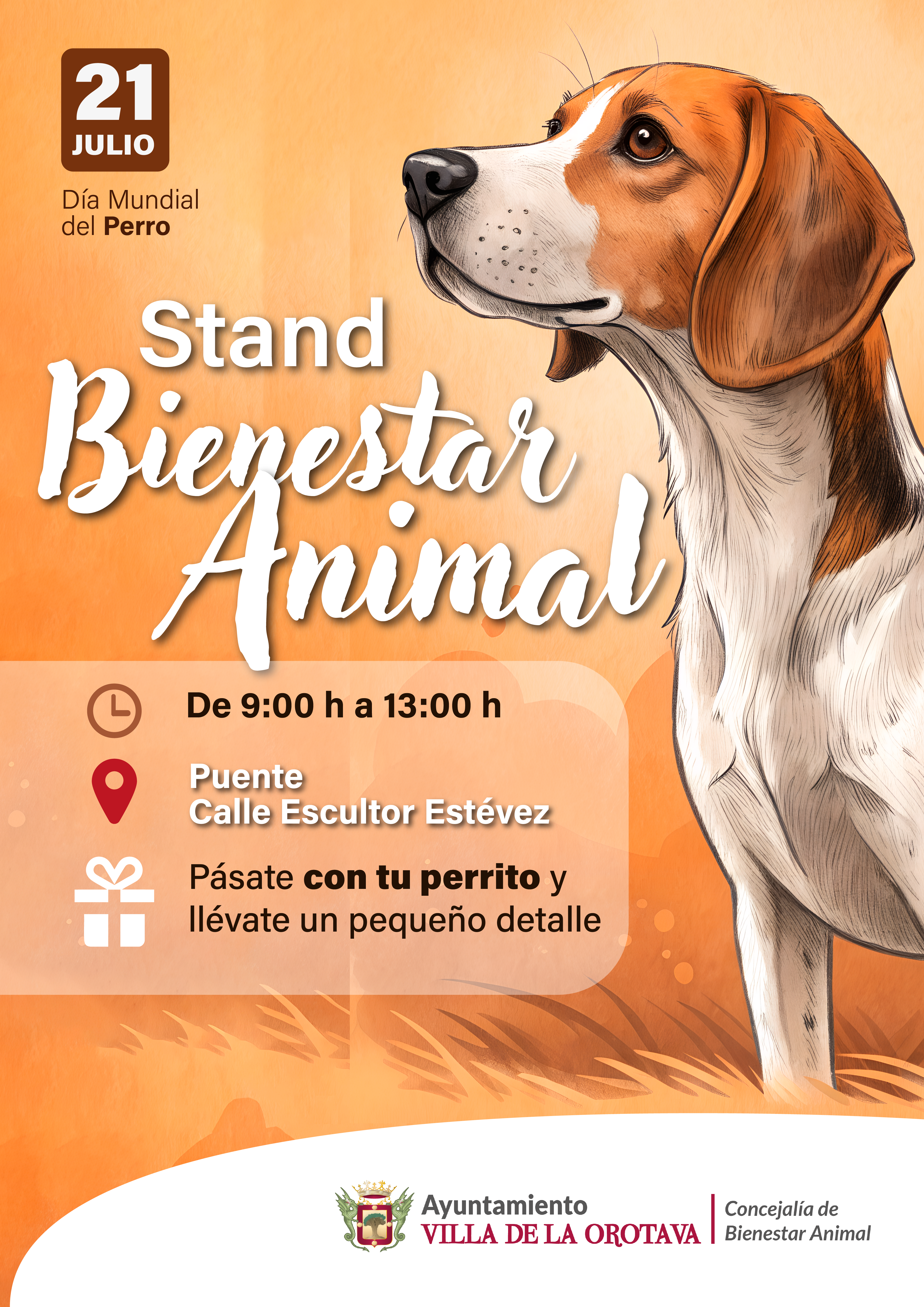 El próximo 21 de julio, entre las 9:00 y 13:00 horas, el área de Bienestar Animal del ayuntamiento de la Orotava contará con un stand en el puente de la calle Escultor Estévez.