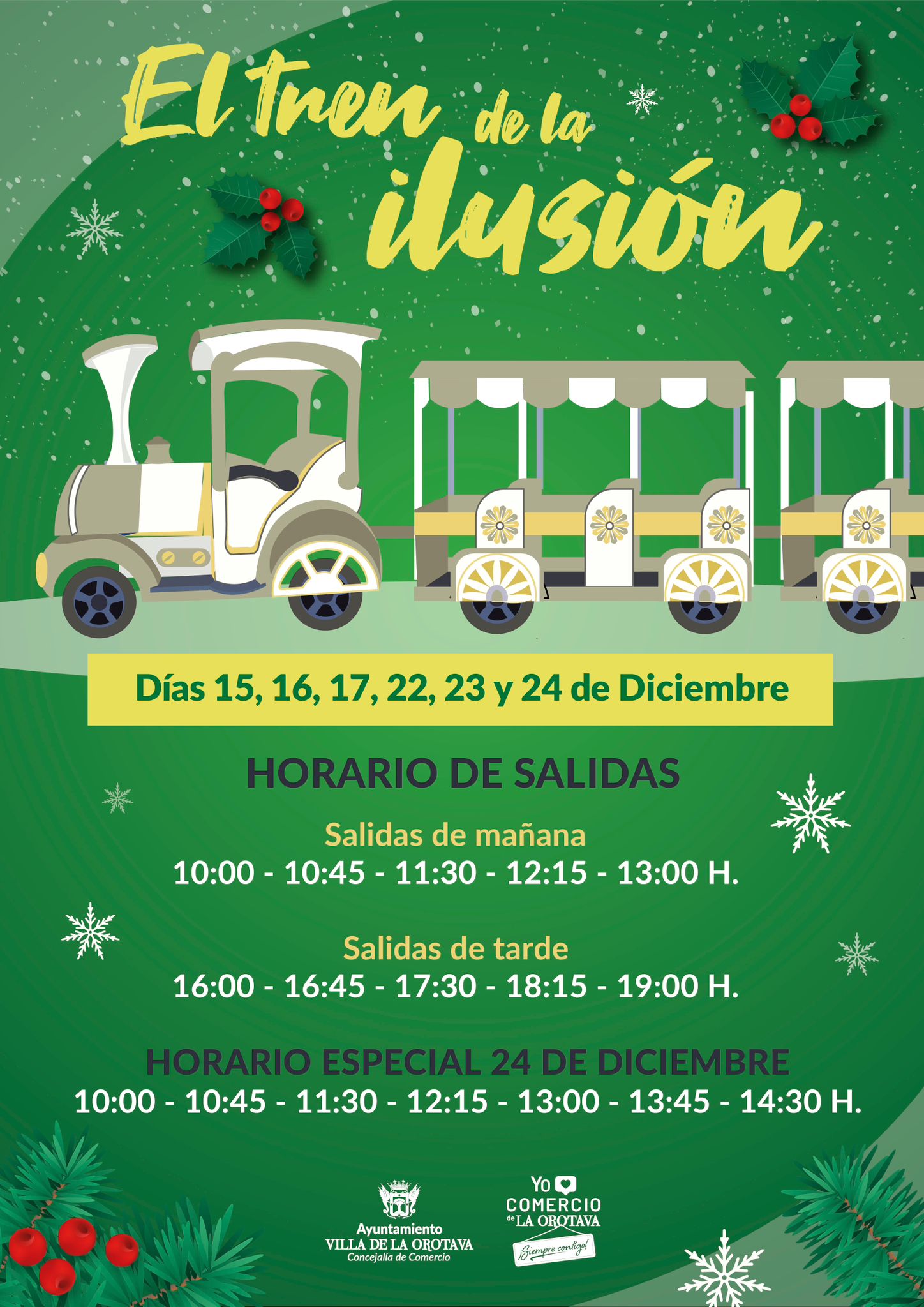 El tren estará disponible los días 15, 16, 17, 22, 23 y 24 de diciembre y contará con varios horarios de salida tanto por la mañana como por la tarde.