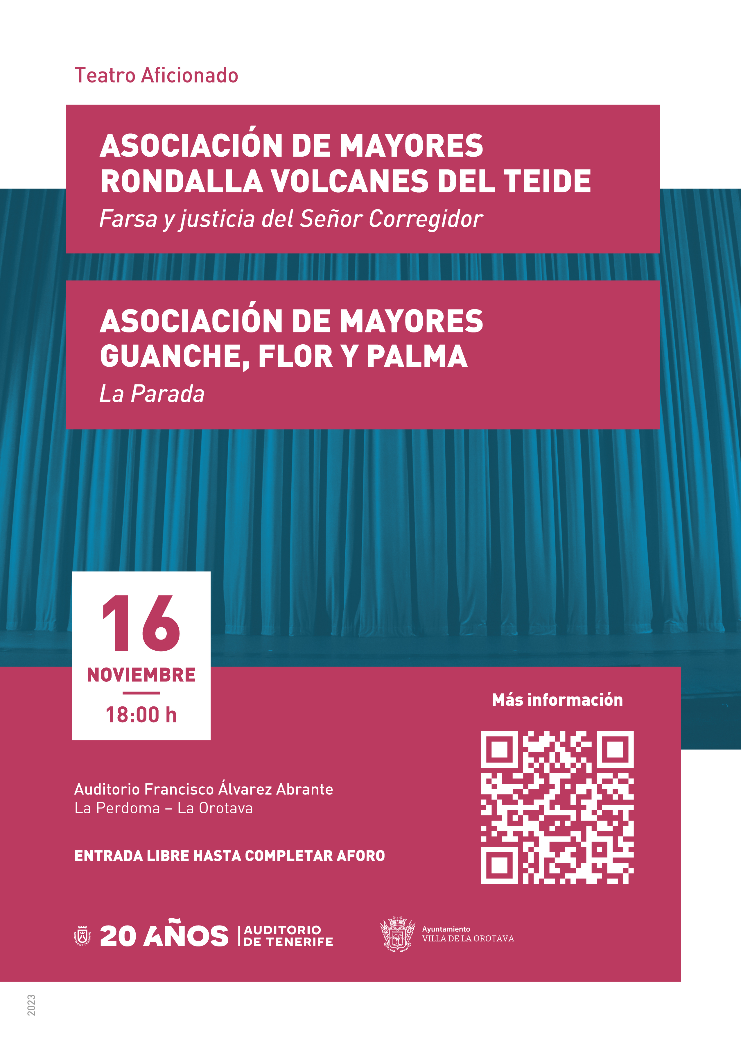 La Asociación Cultural Volcanes del Teide y la Asociación de Mayores Guanche, Flor y Palma estrenarán, respectivamente, las obras "Farsa y justicia del Señor Corregidor" y "La Parada".
