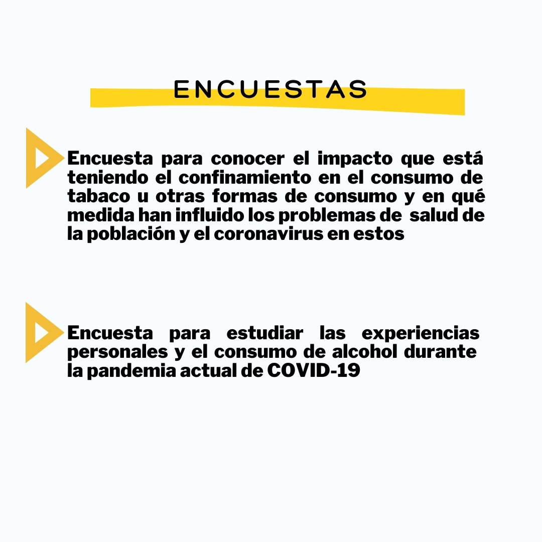 1. Estudio para conocer el impacto que está teniendo el confinamiento en el consumo de tabaco u otras formas de consumo y en qué medida han influido los problemas de salud de la población y el coronavirus en estos.
