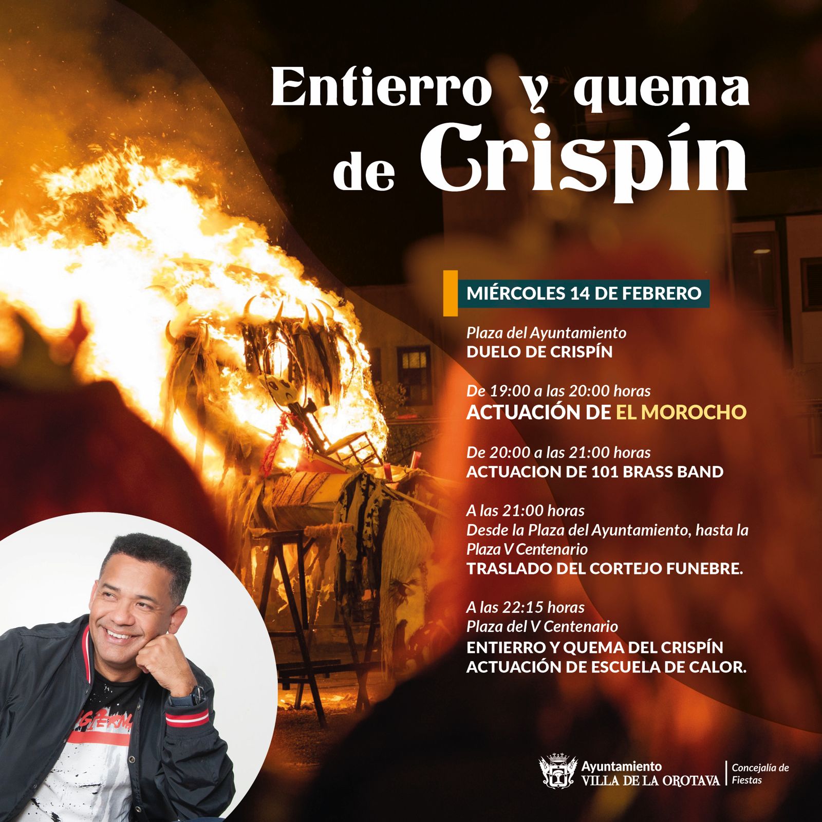 22:15 horas: Entierro y quema del Crispín en la Plaza del V Centenario. Actuación de Escuela de Calor.