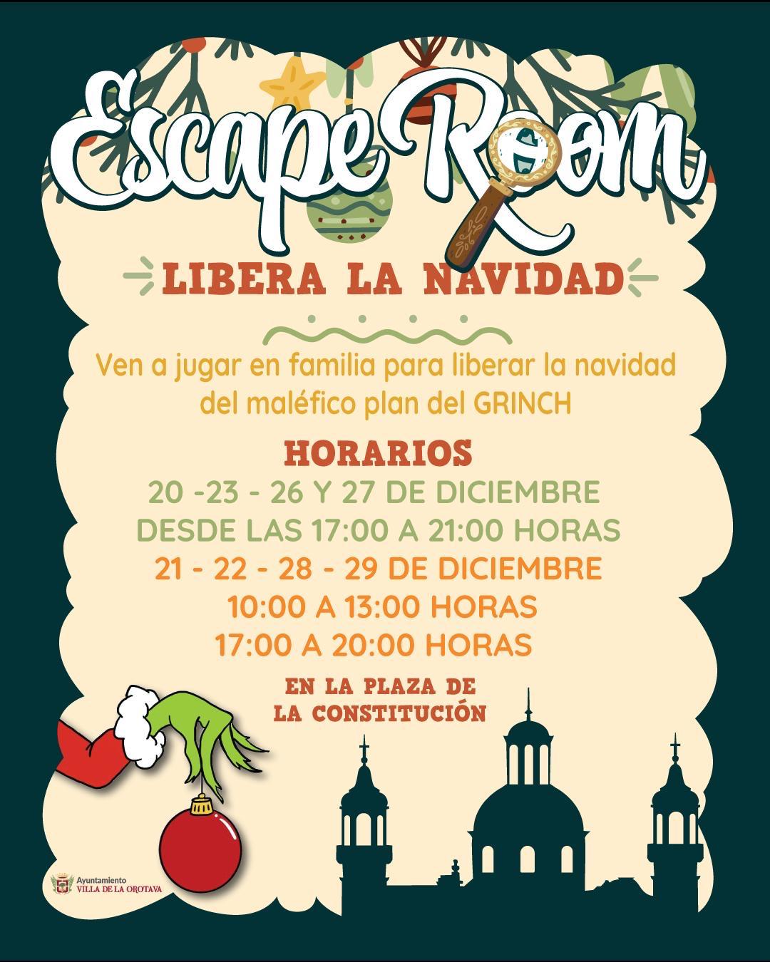 El Escape Room estará abierto del 20 al 28 de diciembre en la Plaza de la Constitución. El horario será de 17:00 a 21:00 horas entre semana, y de 10:00 a 13:00 y de 17:00 a 20:00 los findes de semana