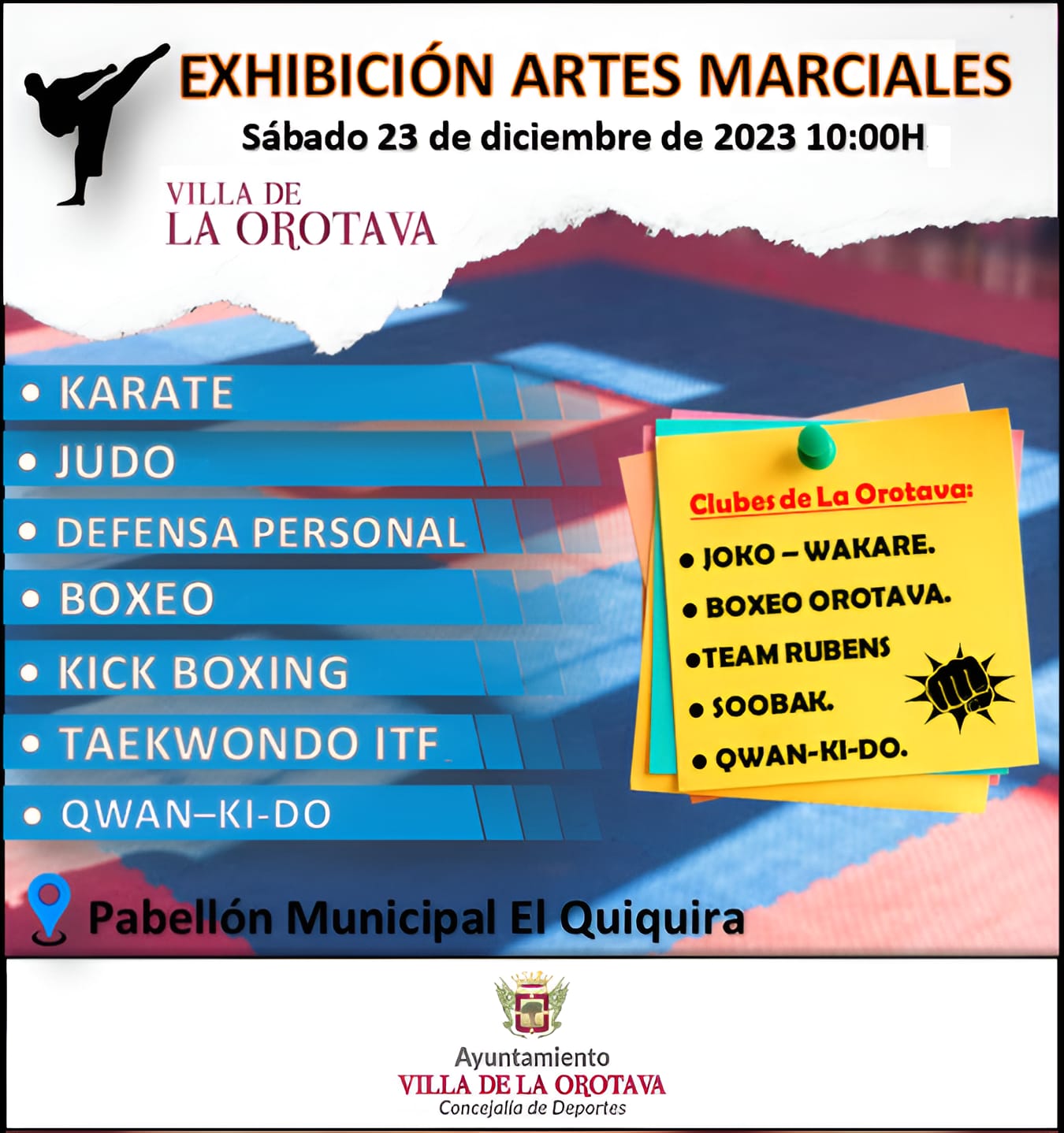 El próximo 23 de diciembre tendrá lugar la Exhibición de Artes Marciales y que contará con la participación de varios clubs de La Orotava.