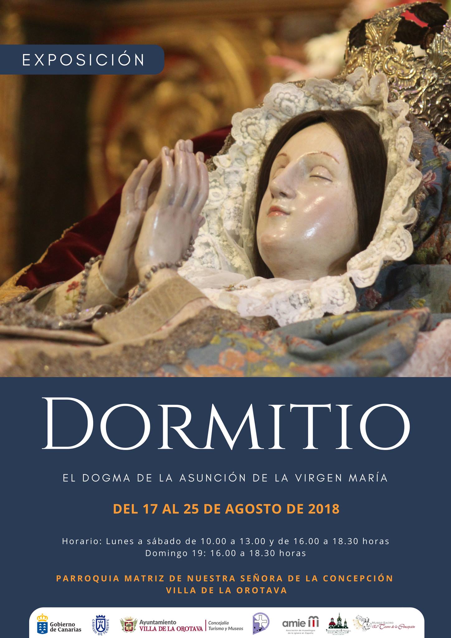 Exposición que cerrará los actos conmemorativos del X Aniversario de la apertura del museo. Lleva por título “DORMITIO. El Dogma de la Asunción de la Virgen María” en el que se muestra el patrimonio asociado a la advocación de Ntra. Sra. del Tránsito y a los dos momentos finales de la secuencia del ciclo de la vida de la virgen: la Asunción y la Coronación. Para ello, se contará con piezas pictóricas y escultóricas de diversos inmuebles de nuestro municipio, tanto eclesiásticos como de particulares que las han cedido expresamente para esta ocasión. Una muestra que se realizará dentro de las dependencias parroquiales, desde el viernes 17 hasta el sábado 25 de agosto en horario de 10.00 a 13.00 y de 16.00 a 18.30 horas, salvo el domingo 19 del mismo mes únicamente en horario de tarde.