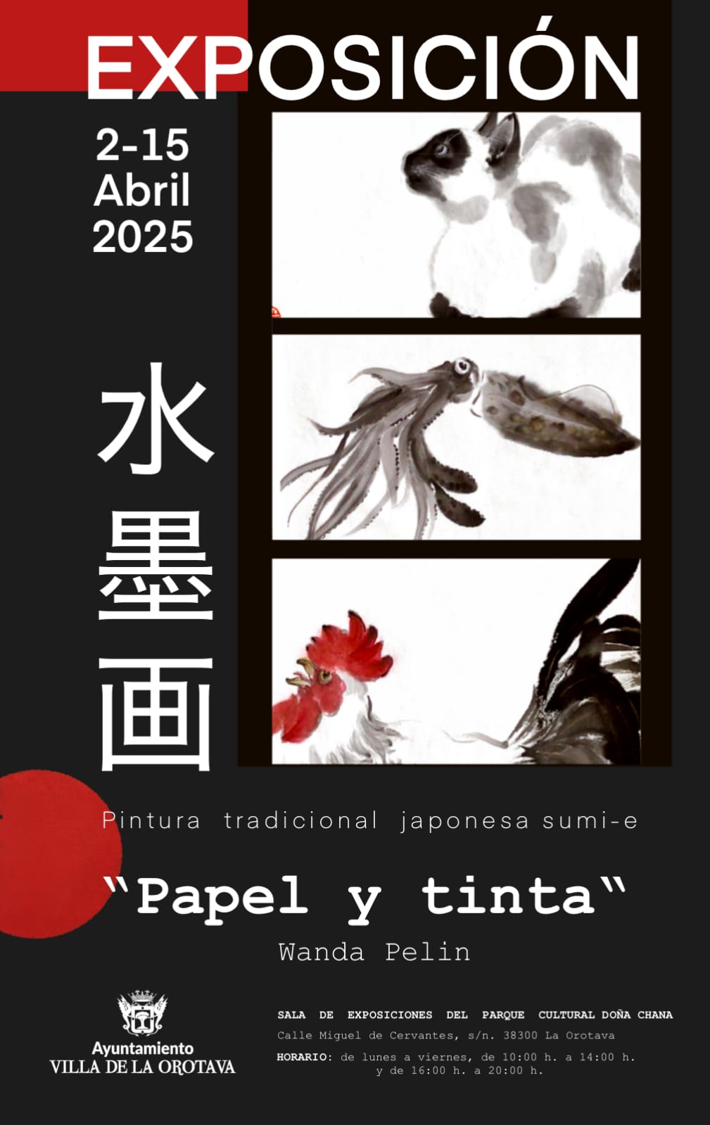 La Sala de Exposiciones del Parque Cultural Doña Chana acoge "Papel y tinta", una muestra de pintura tradicional japonesa sumi-e de la artista Wanda Pelin. La exposición estará abierta al público del 2 al 15 de abril de 2025, con un recorrido por la delicadeza y la expresividad de esta técnica ancestral.
