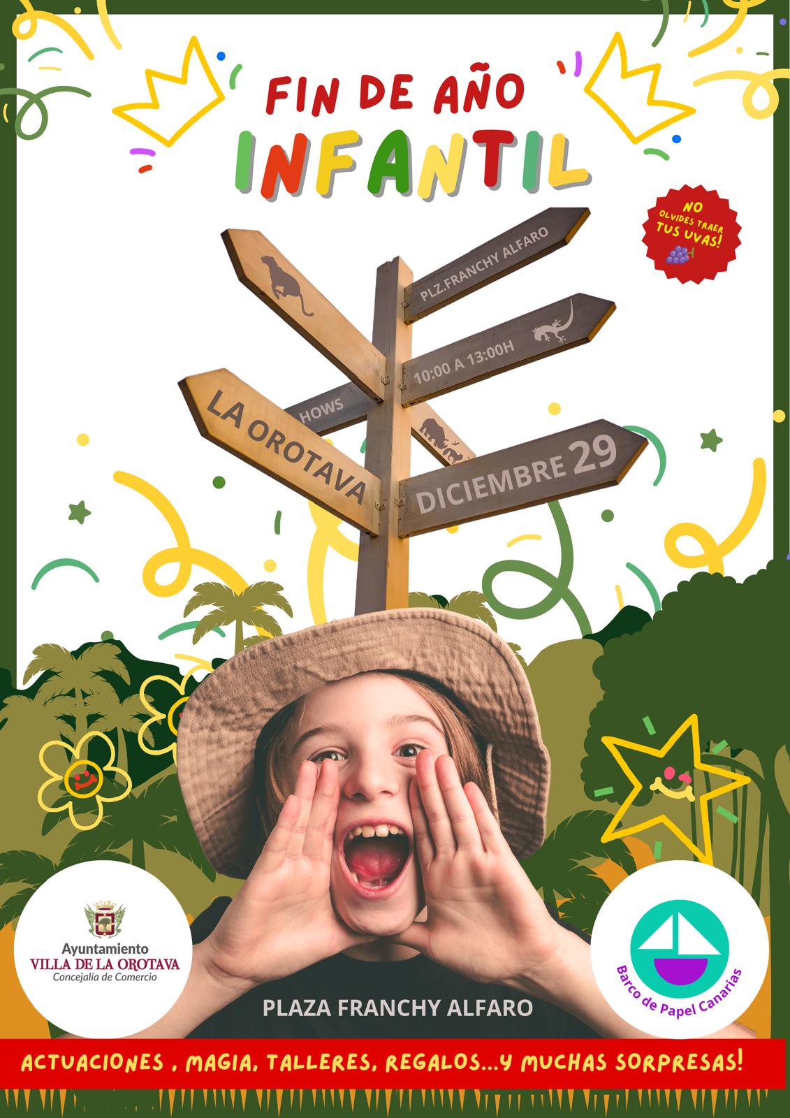El Fin de Año Infantil se celebrará el próximo 29 de diciembre en la Plaza Franchy Alfaro, de 10:00 a 13:00 horas. Habrá actuaciones, talleres, magia, regalos ¡y muchas sorpresas!