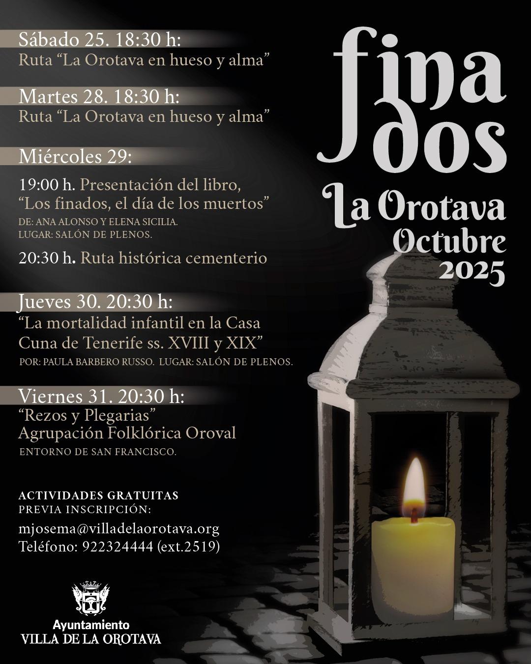 Nueva edición del programa Finados La Orotava 2025, una propuesta cultural que invita a reflexionar sobre la memoria, las tradiciones y las costumbres vinculadas al Día de los Difuntos.