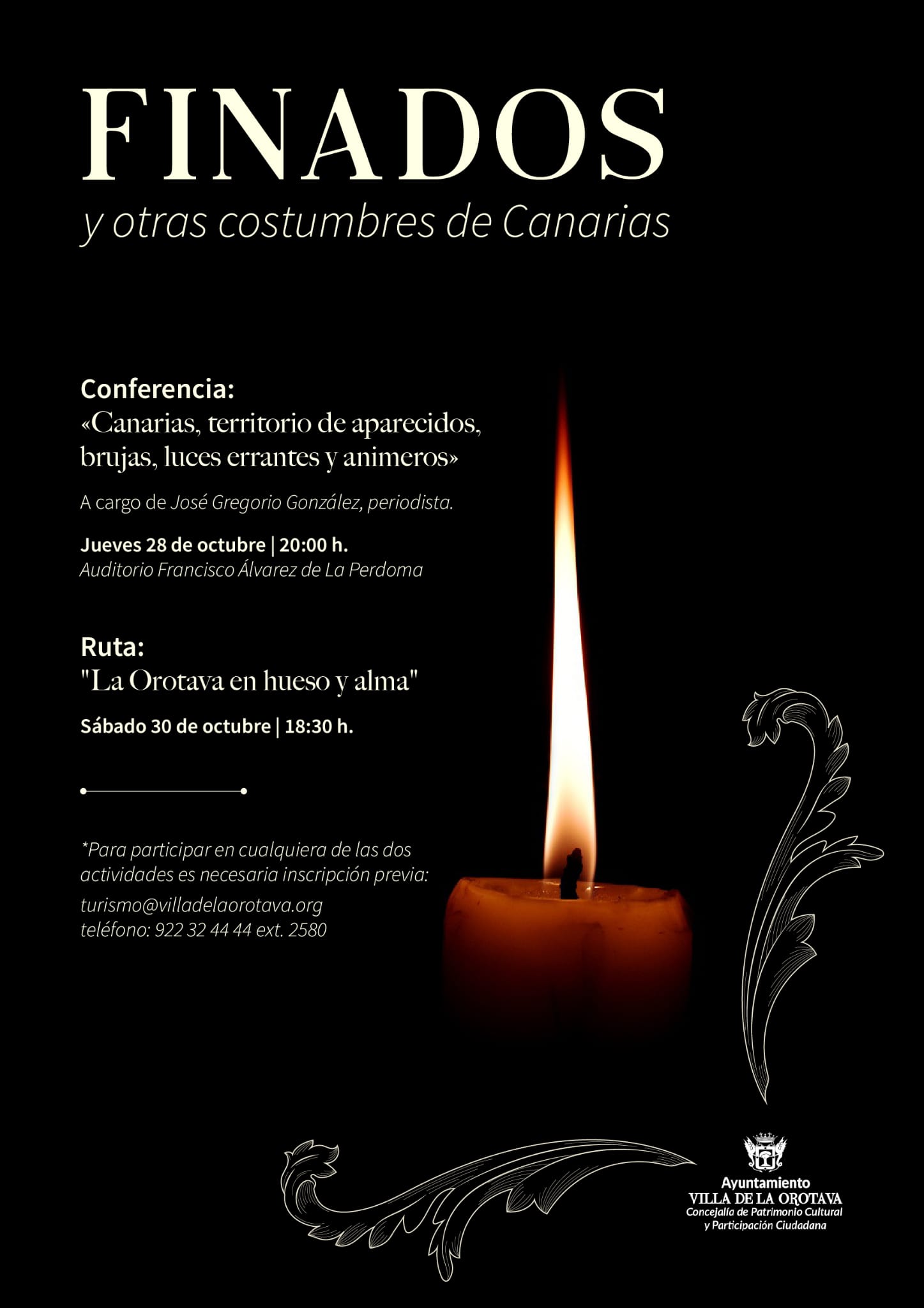 Jueves 28 de octubre. 20:00 horas: Conferencia: "Canarias, territorio de aparecidos, brujas, luces errantes y animeros". A cargo de José Gregorio González (periodista). Auditorio Francisco Álvarez Abrante de La Perdoma