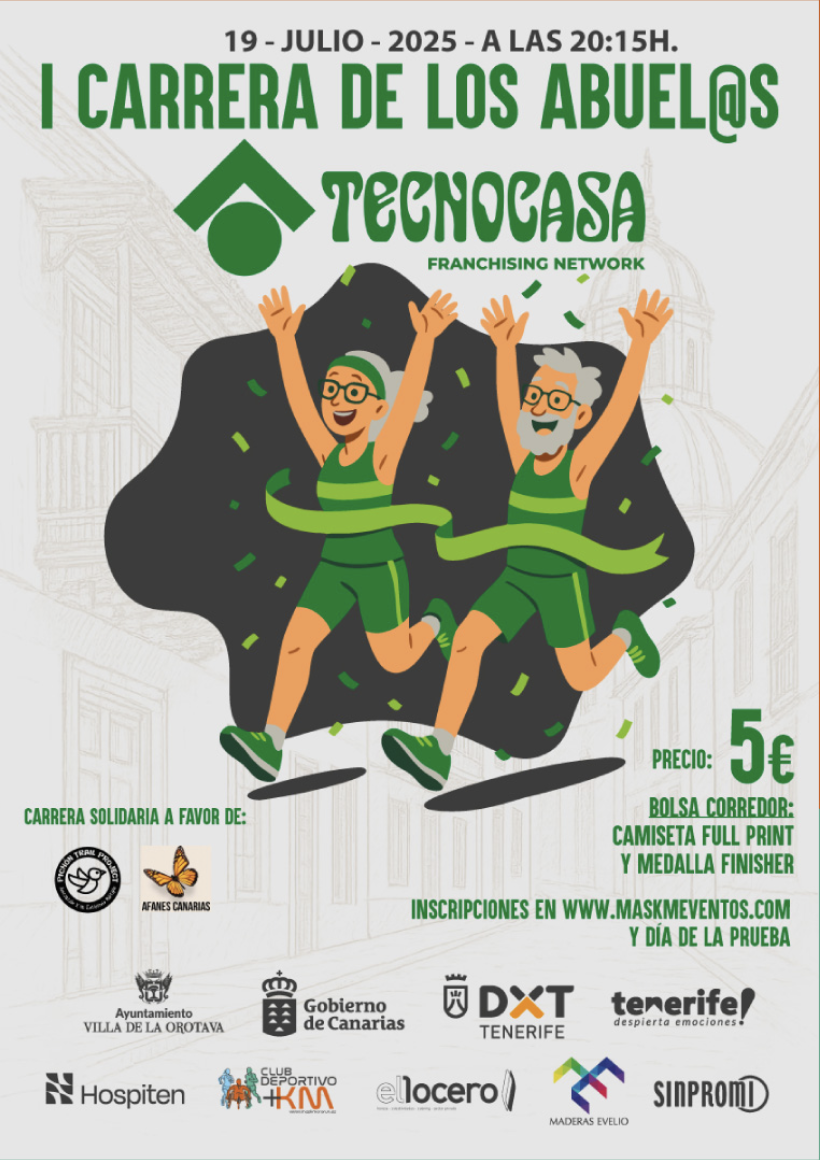 El próximo 19 de julio a las 20:15 h se celebra una carrera muy especial: la I Carrera de los Abuelos Tecnocasa, incluida en el Circuito Orotava 2025.