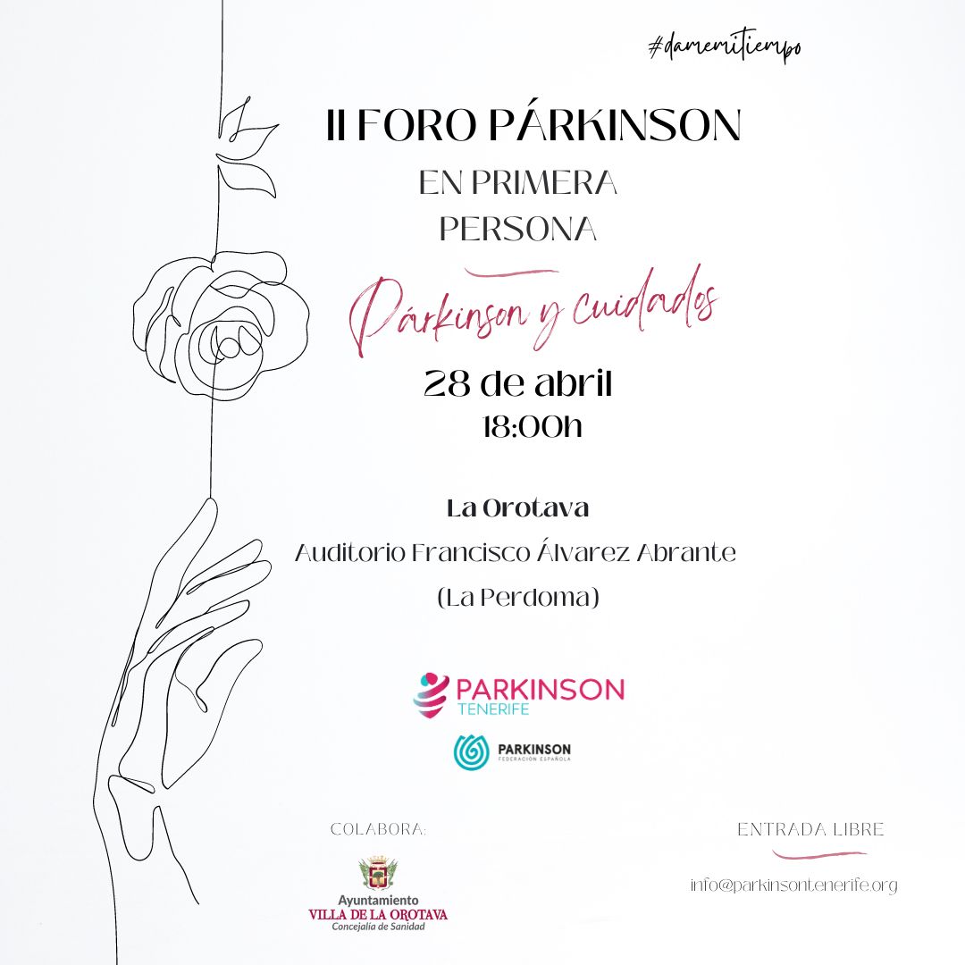 Fecha/Hora: Viernes, 28 Abril, 2023Lugar: Auditorio Francisco Álvarez AbranteDescripción: II FORO PÁRKINSON en La Orotava El 28 de abril, a las 18:00h en el Auditorio Francisco Álvarez Abrante (La Perdoma) Entrada libre