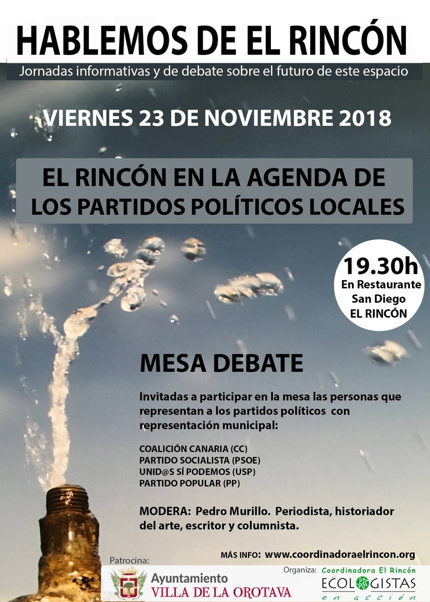 "El Rincón en la Agenda de los partidos políticos locales". Será este viernes 23 de noviembre, a las 19:30 horas, en el Restaurante San Diego