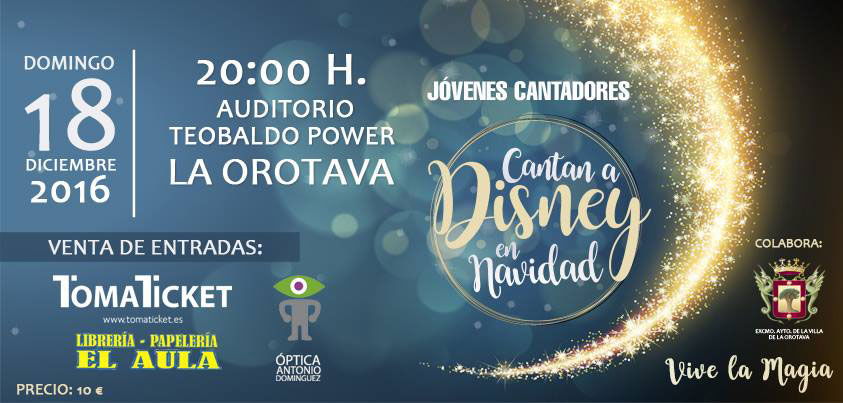 Sueña, siente, canta, disfruta y déjate transportar con Jóvenes Cantadores en un recorrido musical por los momentos favoritos de Disney. Nadie querrá perderse esta producción 100% canaria. Una oportunidad única, un regalo perfecto para estas navidades.