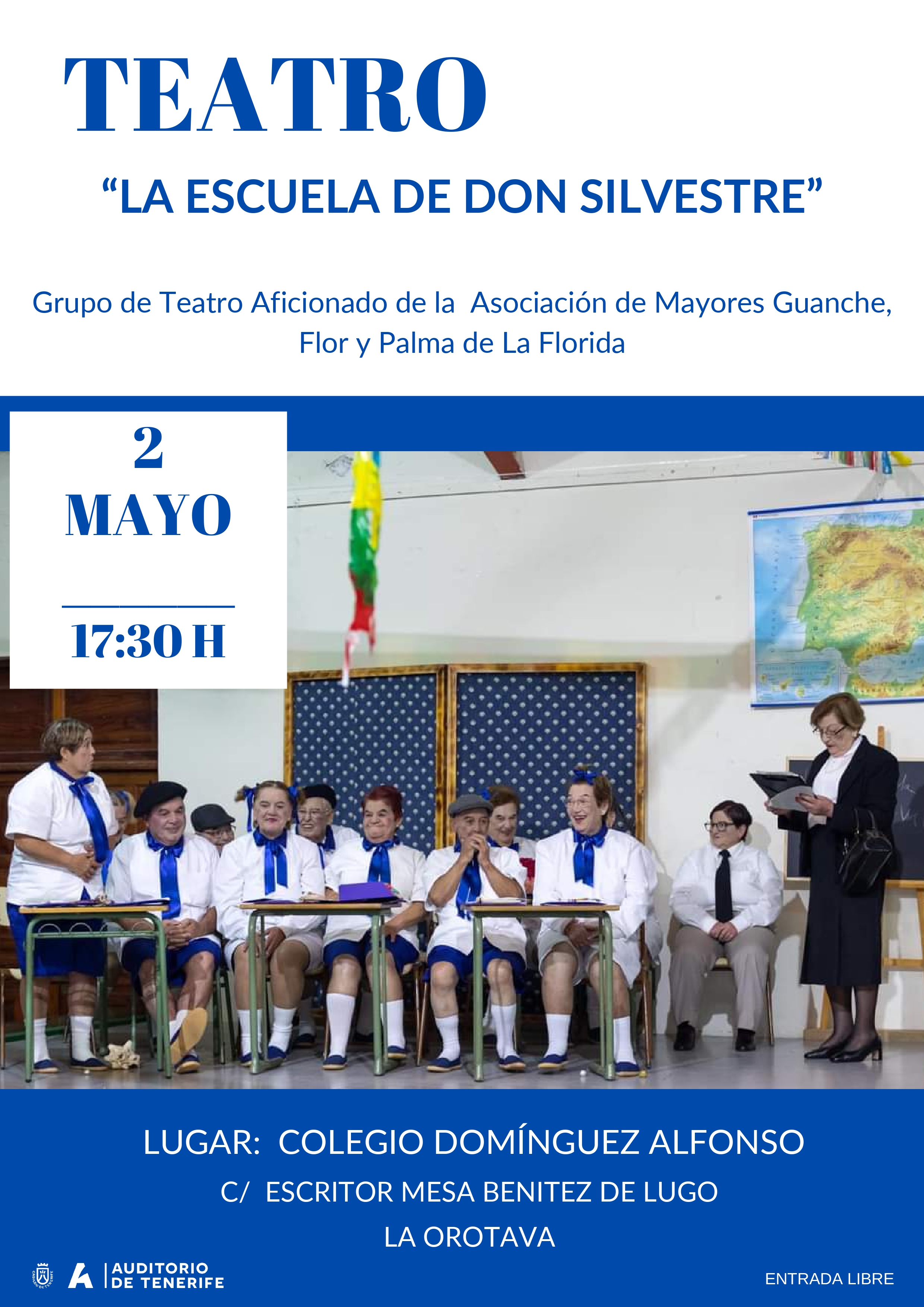 Disfruta del Teatro de "La Escuela de Don Silvestre", del Grupo de Teatro Aficionado de la Asociación de Mayores Guanche Flor y Palma de La Florida.