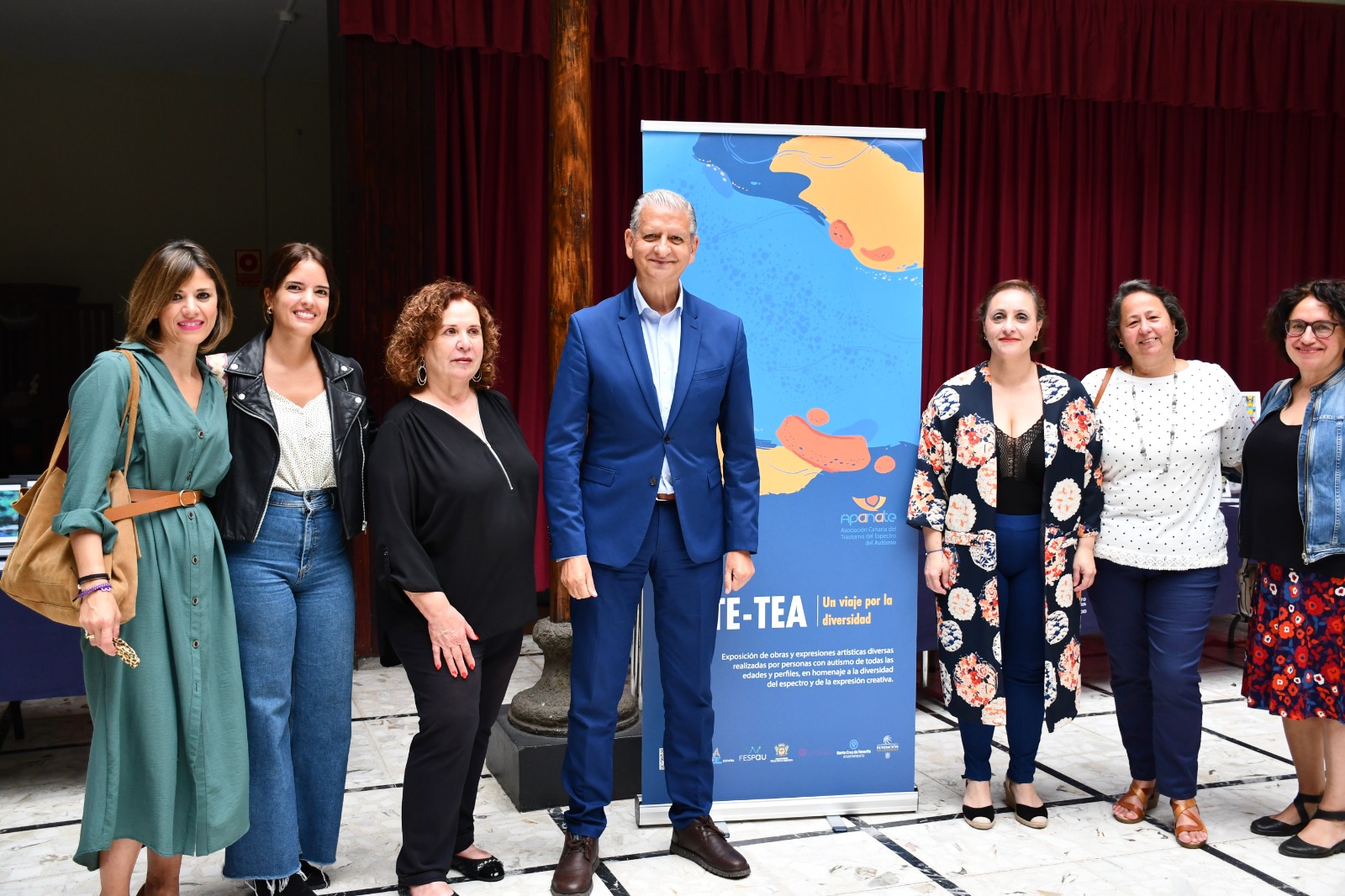El alcalde Francisco Linares visitó la exposición junto a la concejala delegada de Bienestar Social, Belén González, la presidenta de la Asociación Canaria del Trastorno del Espectro del Autismo (Apanate), María del Carmen Delia Rosa Díaz, y representantes y trabajadores de Apanate en La Orotava.