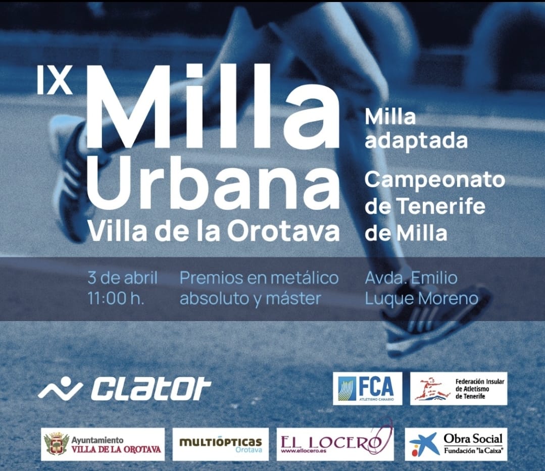 Fecha/Hora: Jueves, 24 Marzo, 2022Lugar: La Orotava Una nueva edición en la que podrán participar corredores y atletas desde la categoría Sub-8 hasta la categoría Máster. Esta edición incluye la Milla Adaptada