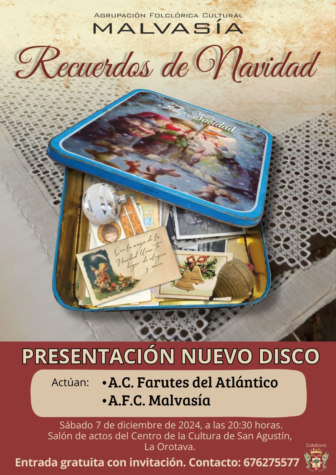 No te pierdas la presentación del nuevo disco "Recuerdos de Navidad" de la Agrupación Folclórica Cultural Malvasía.