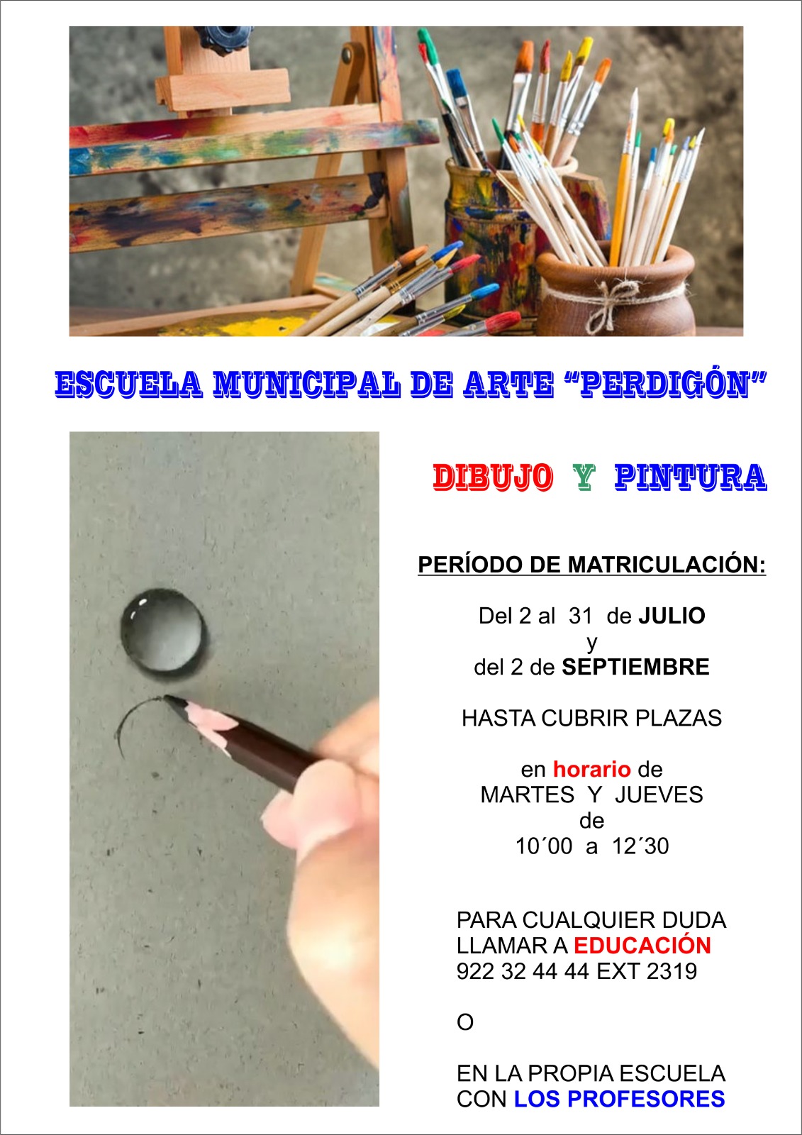 Matricula de Escuela Municipal de Arte "Perdigón", dibujo y pintura.