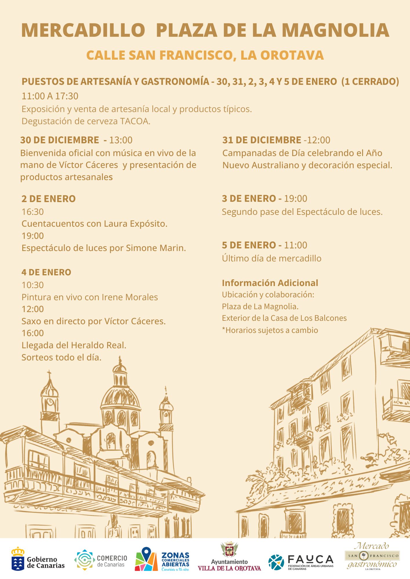 La Plaza de La Magnolia, ubicada en la Calle San Francisco, se convertirá en el escenario perfecto para vivir una experiencia navideña muy especial, con un Mercadillo de Navidad que se celebrará del 30 de diciembre al 5 de enero.