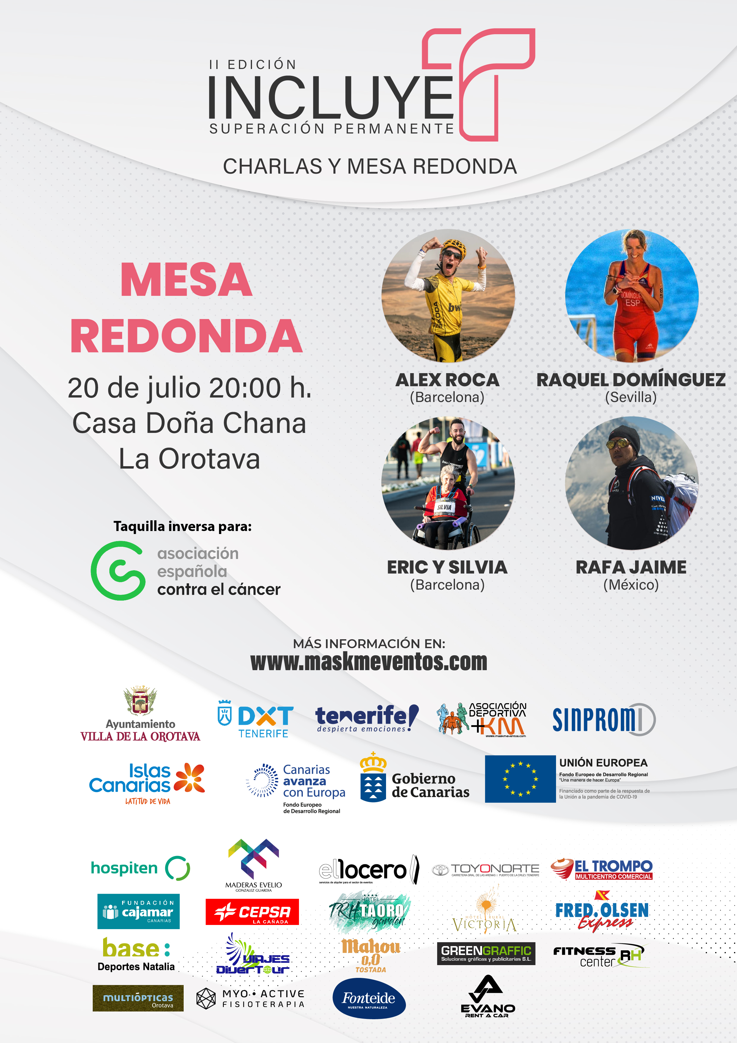 ​​​​​​El 20 de Julio a las 20.00 horas en Casa Doña Chana tendrá lugar la mesa redonda de la II edición de Incluye - Superación permanente, en el marco de las actividadesen preparación para la 8KM de La Orotava.