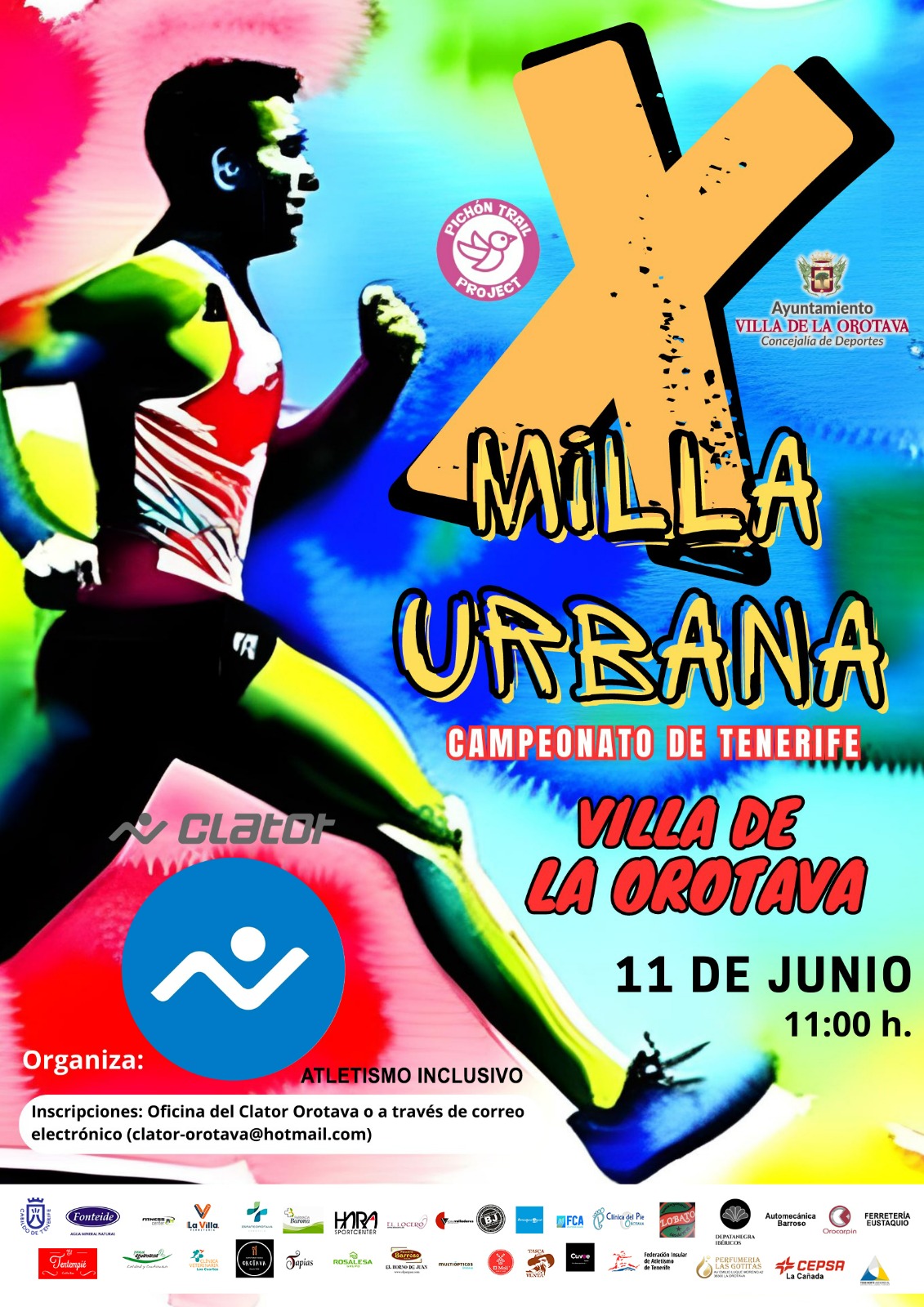 Fecha/Hora: Domingo, 11 Junio, 2023Lugar: La OrotavaDescripción: Campeonato de Tenerife 🏃🏼♀️MILLA URBANA 11 de junio a las 11:00 horas Inscripciones en la Oficina del Clator Orotava o escribiendo un correo a clator-orotava@hotmail.com