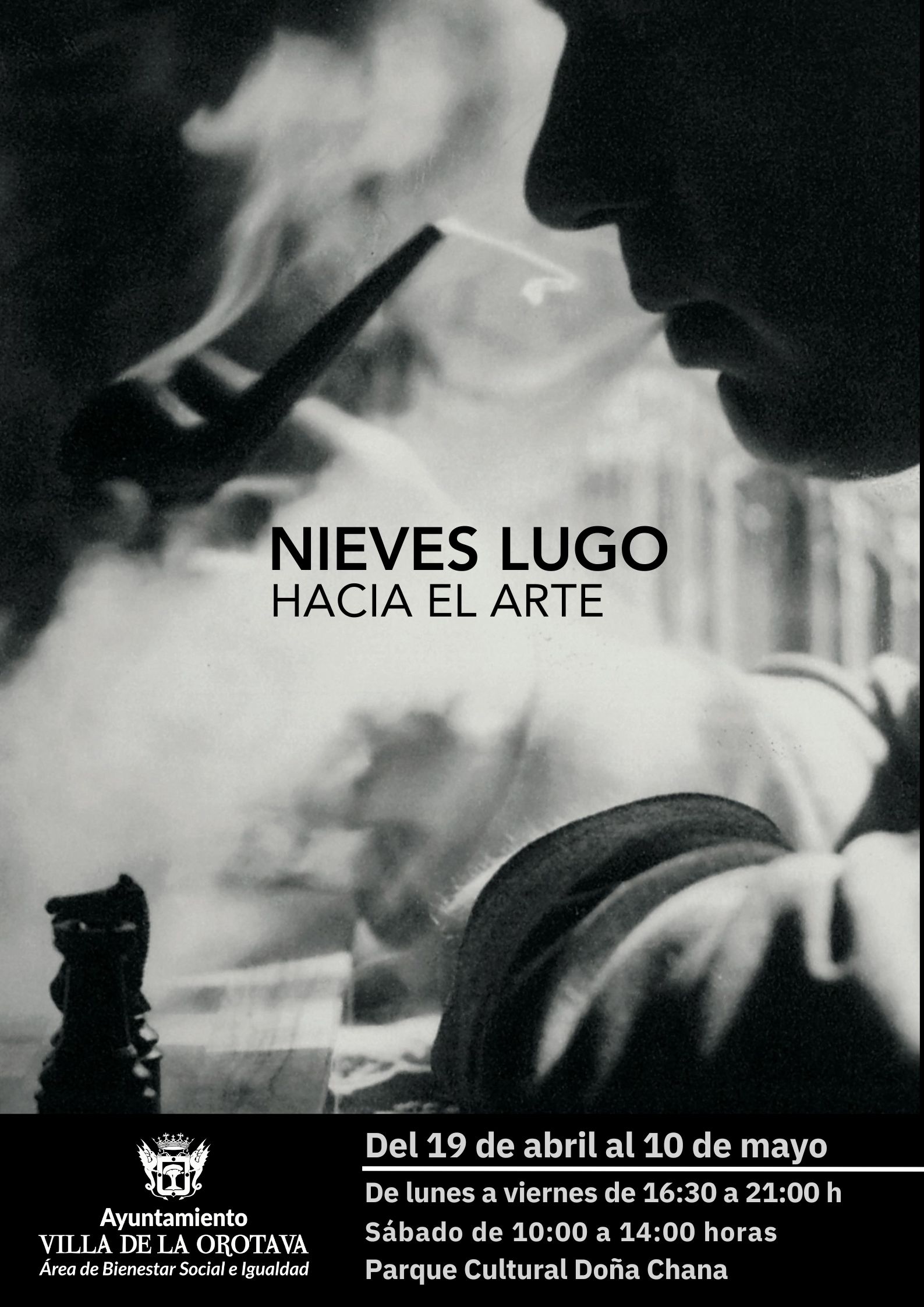 Fecha/Hora: Viernes, 19 Abril, 2024Lugar: Parque Cultural Doña ChanaDescripción: De lunes a viernes de 16:30 a 21 h. Sábados: de 10 a 14 h.LaOrotava NievesLugo arte cine cultura