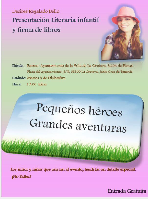 Presentación del libro "Pequeños Héroes, Grandes Aventuras", de Desireé Regalado. Un libro de literatura infantil para los más pequeños de la casa. Martes 5 de diciembre a las 19:00 horas en el Salón Noble de Sesiones del Excmo. Ayuntamiento.