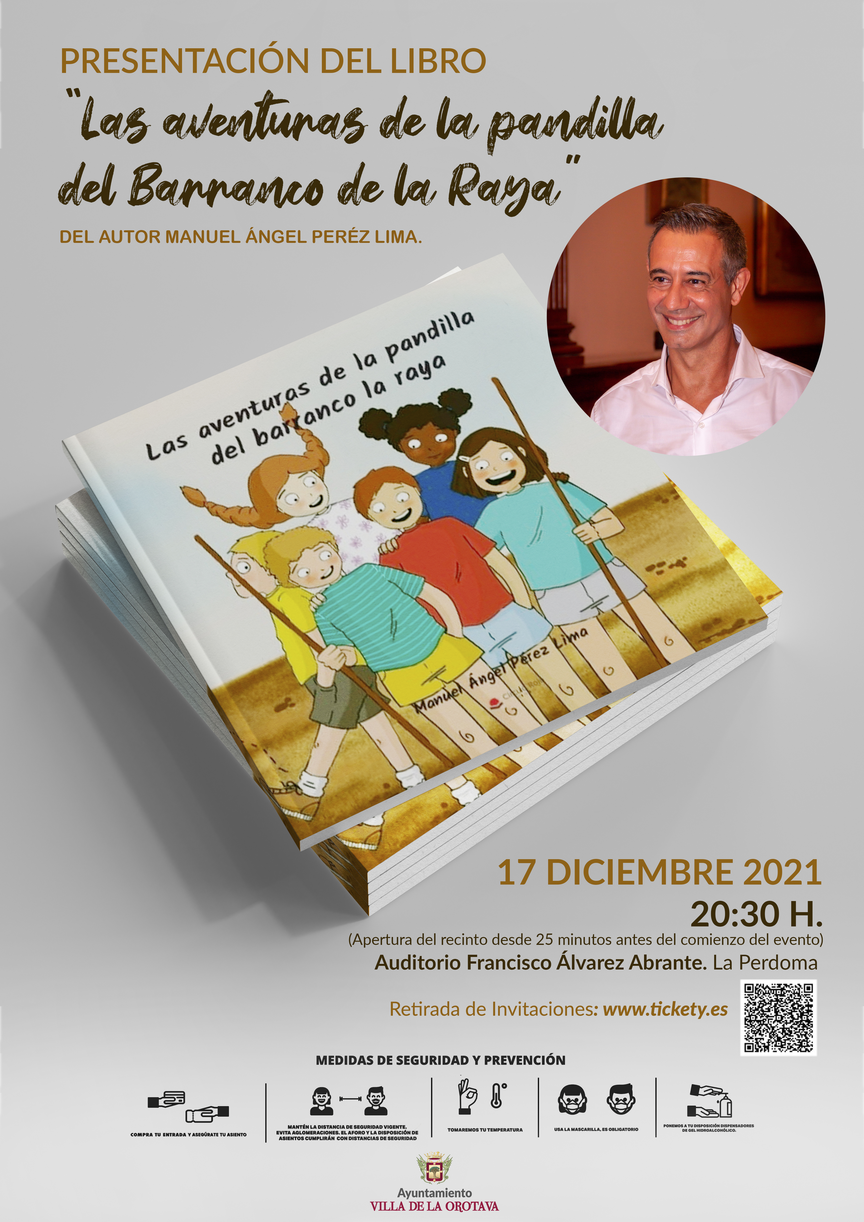 Para adquirir las invitaciones: https://entradas.tickety.es/es/events/presentacion-del-libro-las-aventuras-de-la-pandilla-del-barranco-de-la-raya-del-autor-manuel-angel-perez-lima-la-orotava