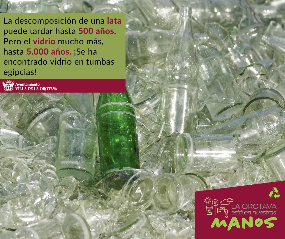 Fecha/Hora: Jueves, 1 Octubre, 2020Lugar: LA OROTAVADescripción: El vidrio es uno de los residuos más perecederos en el tiempo. Recuerda usar el contenedor verde para su reciclaje y reutilización.