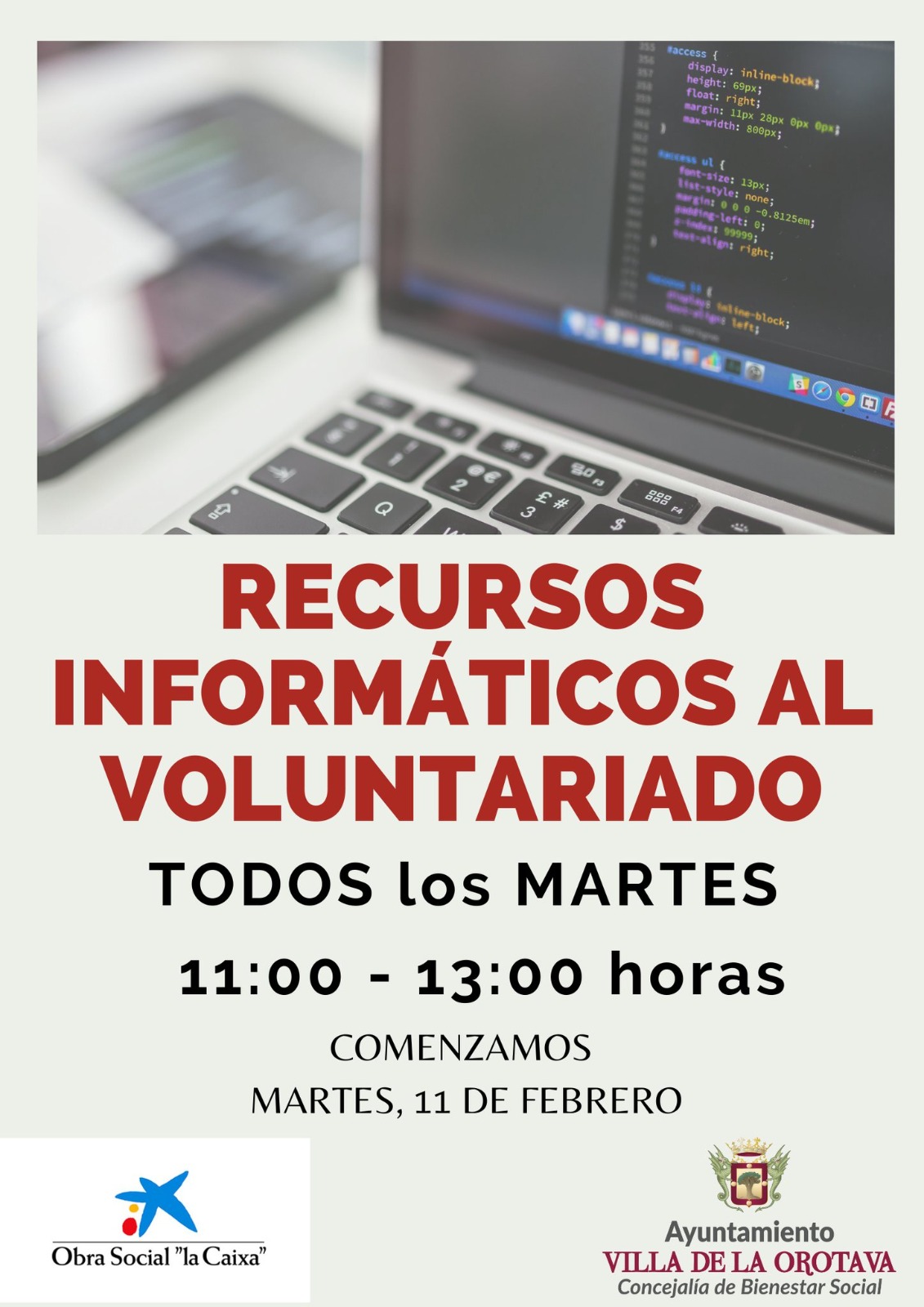 El martes, 11 de febrero, comienza, en el Centro Municipal de Mayores, un curso de nuevas tecnologías denominado "Recursos informáticos al voluntariado". Es una formación destinada a personas que quieran ser voluntarias y que necesitan de cierto manejo de herramientas tecnológicas para desempeñar con mayor eficacia esta labor.