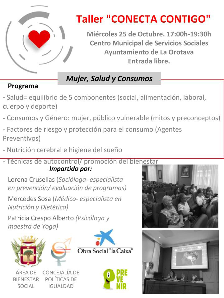 Fecha/Hora: Miércoles, 25 Octubre, 2017Lugar: Centro Municipal de Servicios SocialesDescripción: Taller 'Conecta Contigo'