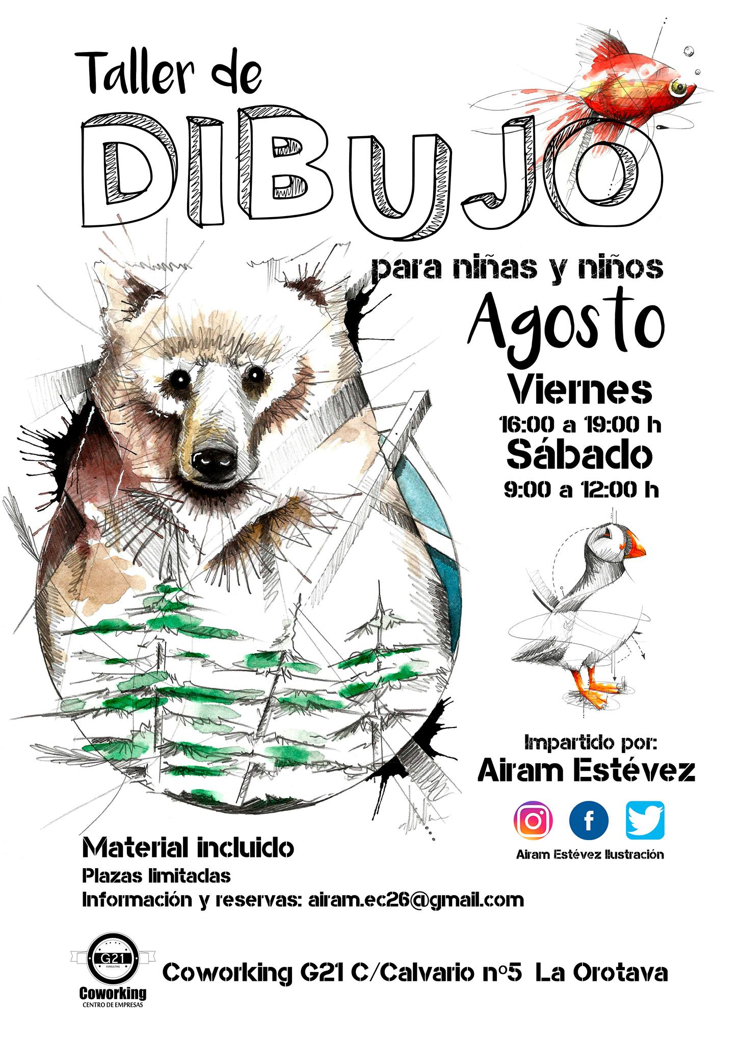 ¿Quieres que tu niña o niño haga algo diferente en Verano? ¿Quieres que se divierta desarrollando su creatividad? Pues aquí tienes el taller de dibujo que se impartirá en el Coworking G21 Consulting el mes de agosto. ¿Y porque de dibujo? Aquí alguna de las razones: - Promueve la libertad de expresión. - Tendrá ideas disparatadas que podrá plasmar en papel. - Le ayudara a trabajar en equipo. - Experimentara con muchos materiales. - Esto le ayudara a buscar soluciones a muchos problemas, lo cual favorecerá la mejorara de su inteligencia. - Y desarrollara la creatividad y la imaginación que todo niña y niño tiene. Y si esto te parece poco, también se divertirán. Así que no dudes y pide información sin compromiso. "Todos los niños y niñas nacen artistas. El problema es cómo seguir siendo artistas al crecer." Pablo Picasso