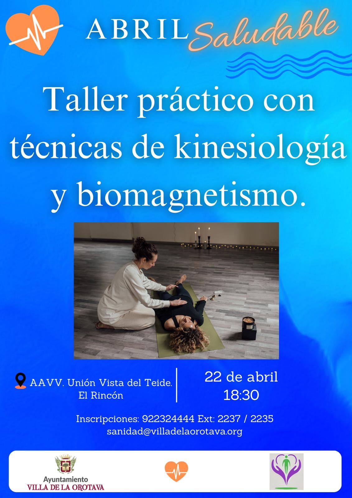 Dentro del programa “Abril Saludable”, ofrecemos un Taller Práctico con Técnicas de Kinesiología y Biomagnetismo. Una oportunidad para conocer y experimentar estas disciplinas enfocadas en el bienestar y el equilibrio del cuerpo.