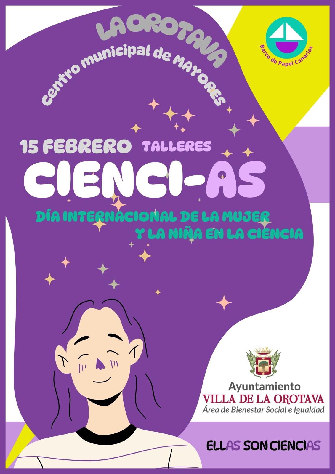El próximo 15 de febrero, el Centro Municipal de Mayores de La Orotava acogerá los talleres CIENCI-AS, una iniciativa organizada por el Área de Bienestar Social e Igualdad en colaboración con Barco de Papel Canarias.