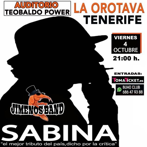 Este próximo viernes 4 de octubre a las 21:00 horas, Auditorio Teobaldo Power "TRIBUTO A SABINA" con la banda Jimenos Band.
