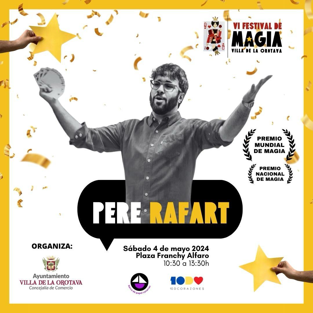 Pere Rafart, el ilusionista reconocido, se une al espectáculo. Con más de 10 años de experiencia realizando espectáculos por todo el mundo, formaciones, team buildings, asesoramiento de guiones, creación de juegos de magia personalizados para publicidad y muchas cosas más.