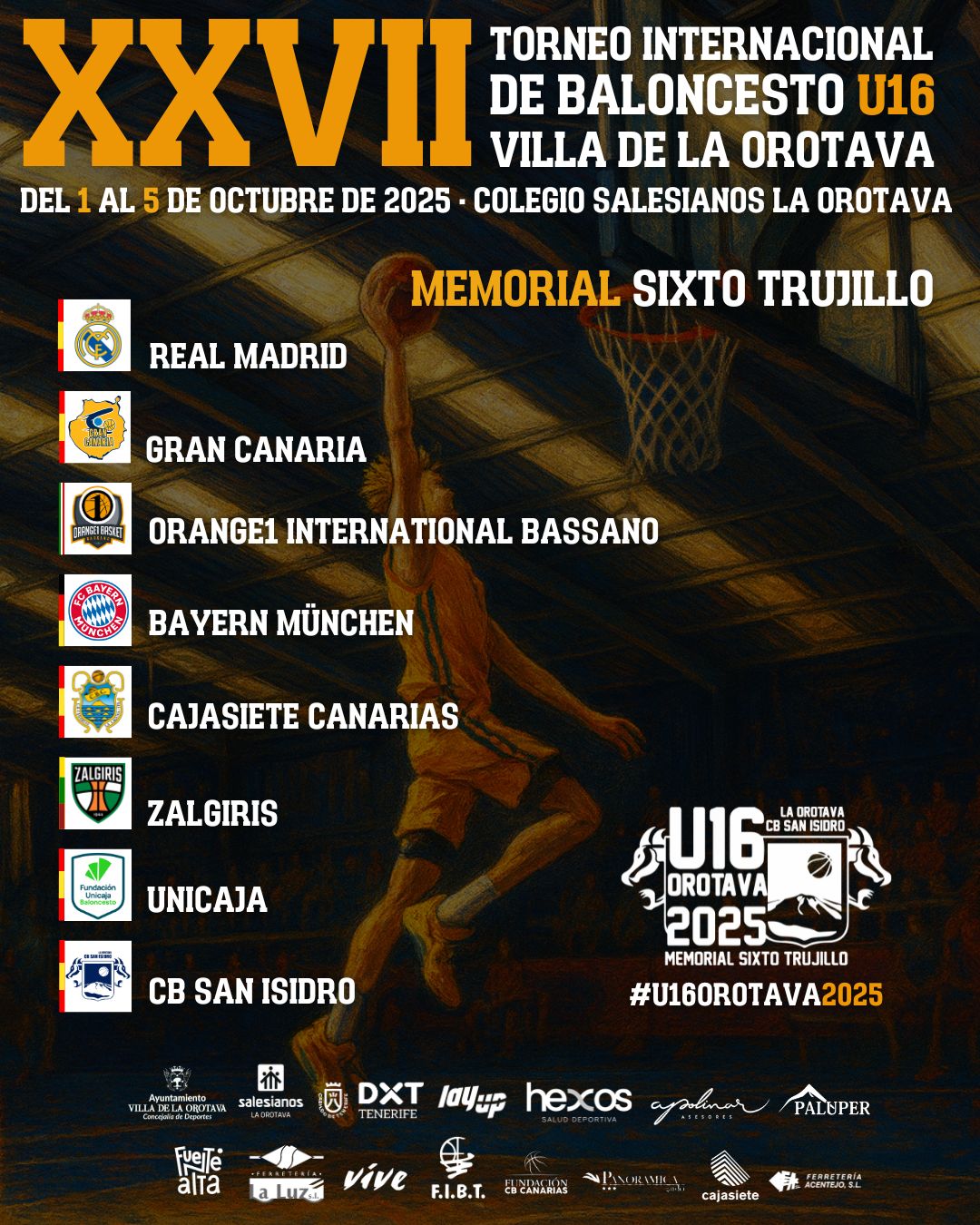 Del 1 al 5 de octubre de 2025, el Colegio Salesianos La Orotava será sede del prestigioso Torneo Internacional de Baloncesto U16 – Memorial Sixto Trujillo.