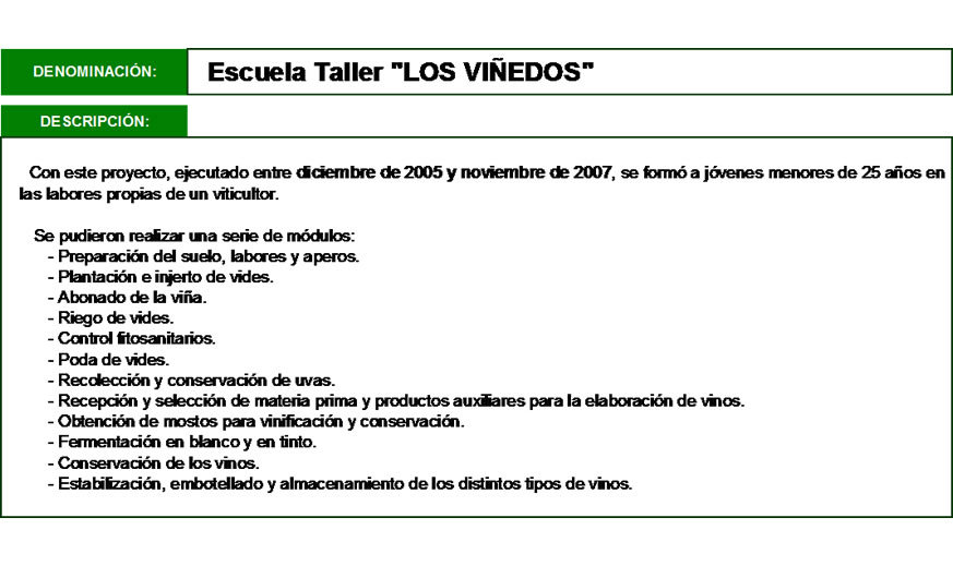 ESCUELAS TALLER / CASA DE OFICIO Son programas destinados a desempleados menores de 25 años, cuyo objetivo es facilitar el acceso al trabajo mediante el aprendizaje y la experiencia profesional en una ocupación. Constan de una primera etapa formativa de iniciación y otra segunda de formación en alternancia con el trabajo y la práctica profesional, con una duración de un año, dividida en fases de seis meses.