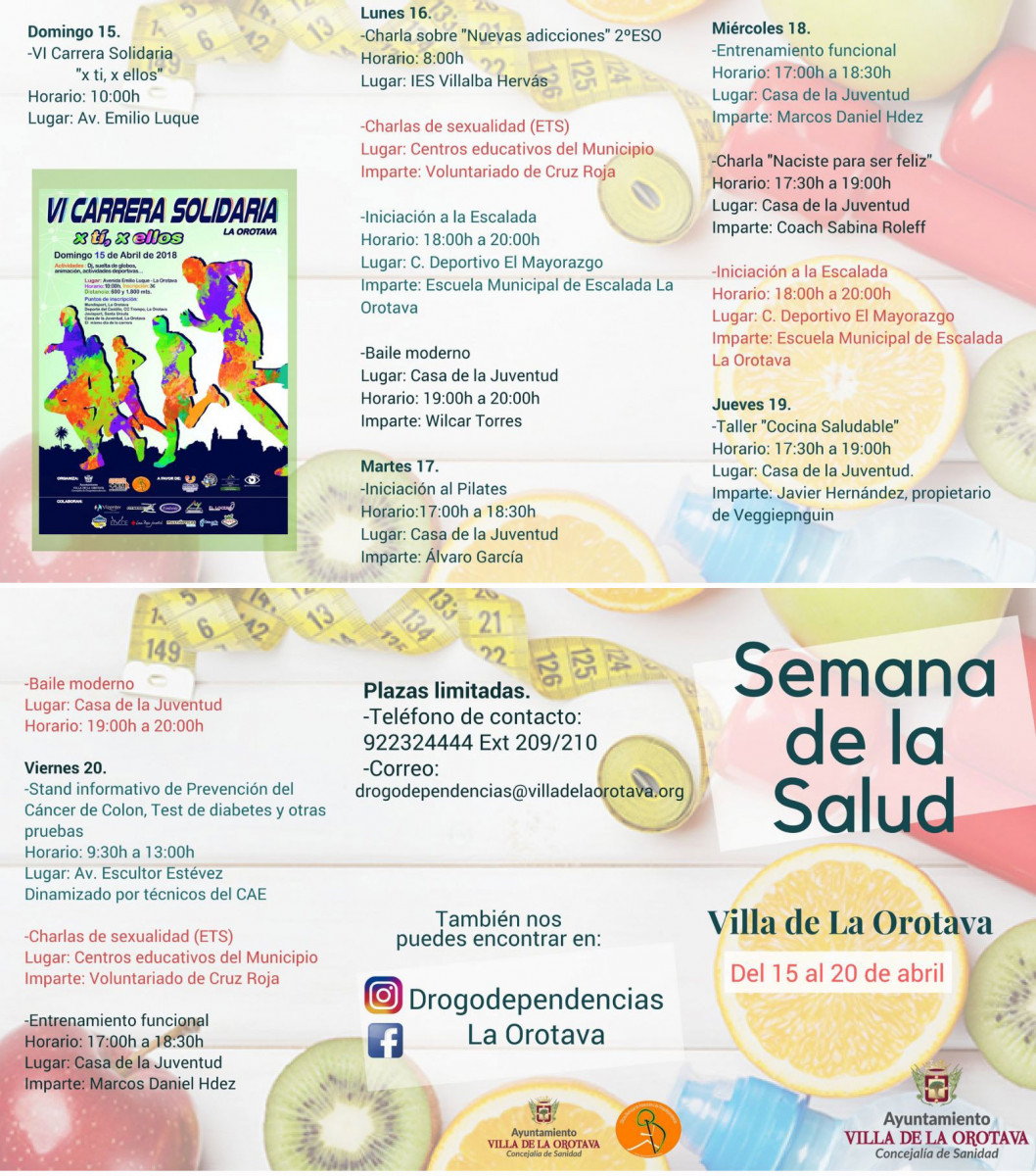 Esta actividad, organizada por el Área de Sanidad y Drogodependencias, se desarrolló el pasado sábado, 7 de abril, Día Mundial de la Salud. La iniciativa forma parte del Programa "Semana de la Salud La Orotava 2018", cuyas actividades se desarrollan hasta el 20 de abril.