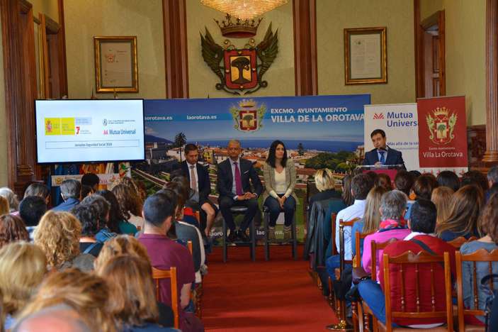 El salón noble del Ayuntamiento de La Orotava acogió el pasado miércoles, 21 de marzo, la jornada de Seguridad Social para empresas organizada por la Tesorería General de la Seguridad Social en colaboración con Mutua Universal y el Colegio Oficial de Graduados Sociales de Santa Cruz de Tenerife. En esta actividad de reciclaje se trataron aspectos relevantes en la materia como Gestión de los Autónomos con las Administraciones e incidencias en el sistema con las incapacidades temporales, ficheros CRA y liquidaciones fuera de plazo.