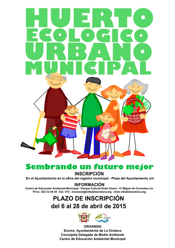 El Ayuntamiento de La Orotava, a través del Centro de Educación Ambiental Municipal, reactiva de nuevo el proyecto de los huertos urbanos y los pone a disposición de los vecinos. En total se sacan 78 parcelas de unos 30 metros cuadrados cada una, aproximadamente. De registrarse más solicitudes que parcelas se procederá a la adjudicación de las mismas mediante sorteo.
