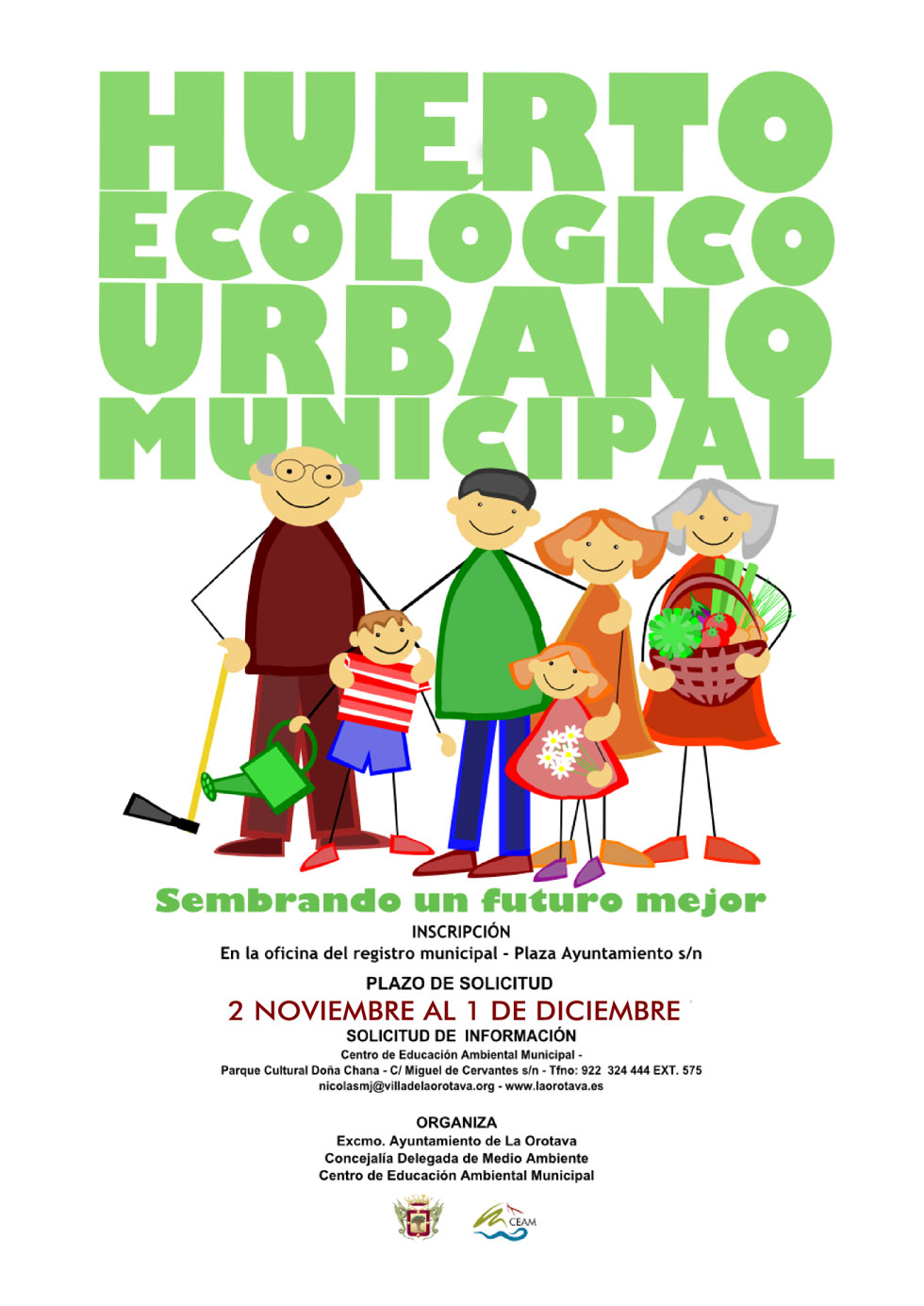 El Ayuntamiento de La Orotava, a través del Centro de Educación Ambiental Municipal, abre de nuevo el plazo para adjudicar los pequeños huertos urbanos y ponerlos a disposición de los vecinos. Así, mediante esta convocatoria pública se procederá a la adjudicación de parcelas de unos 30 metros cuadrados cada una, aproximadamente, que se podrán solicitar hasta el 1 de diciembre. De registrarse más solicitudes que parcelas se procederá a la adjudicación de las mismas mediante sorteo.
